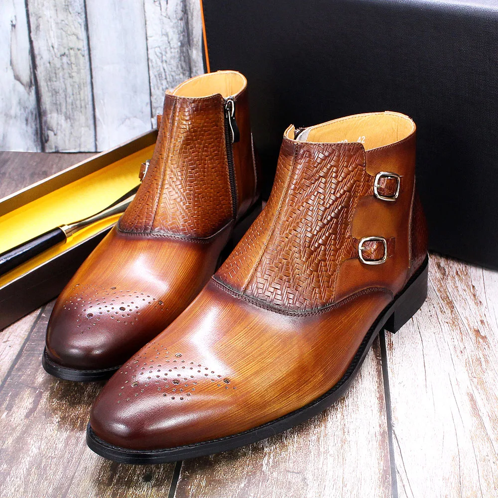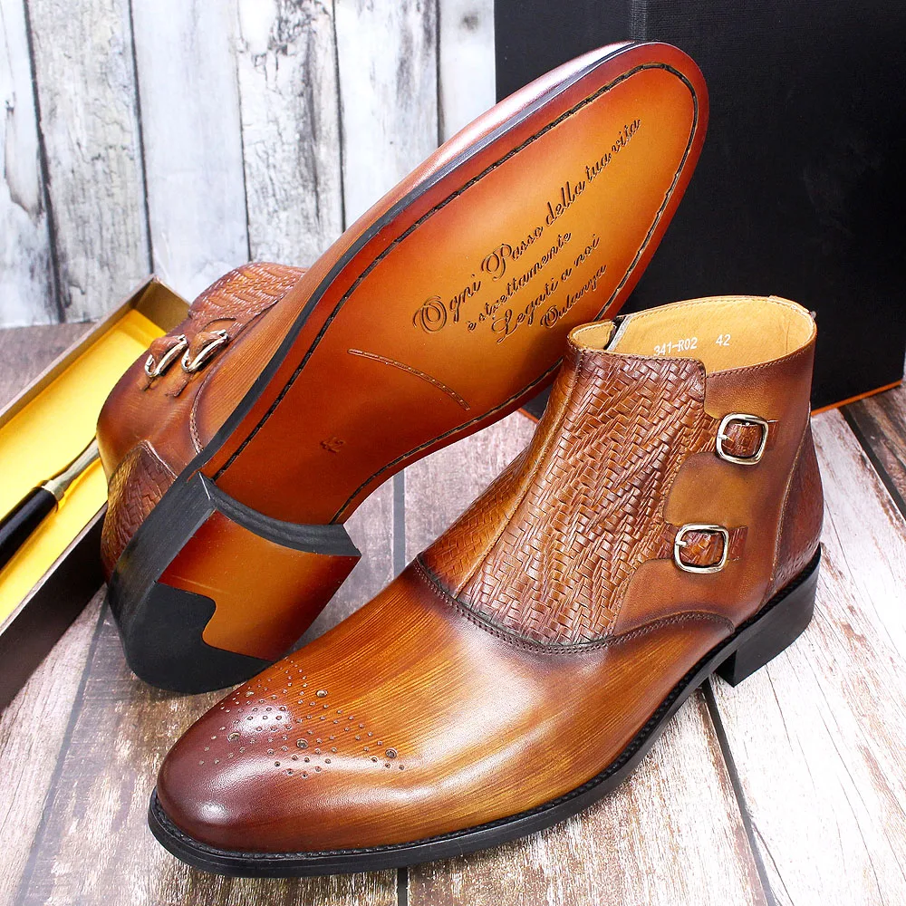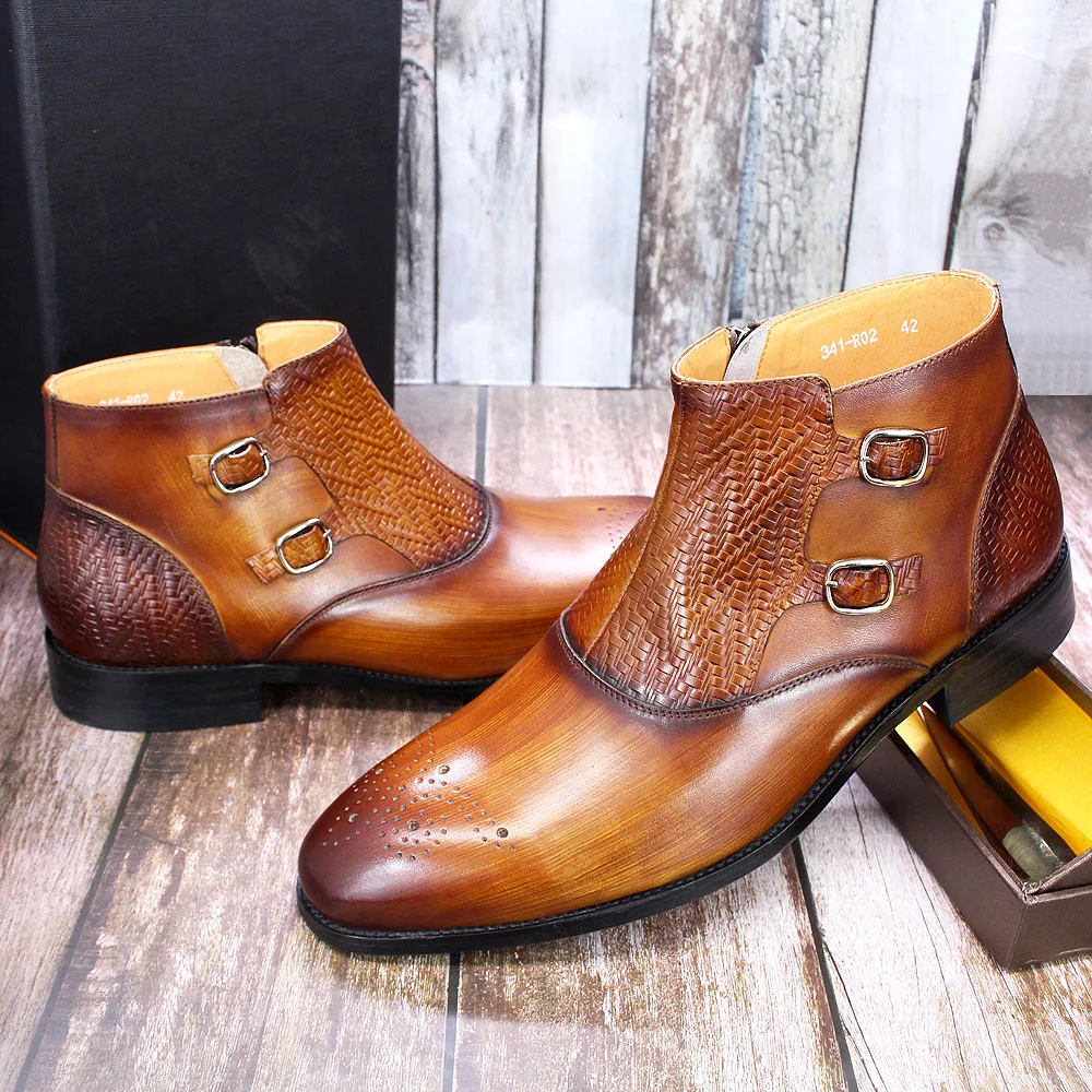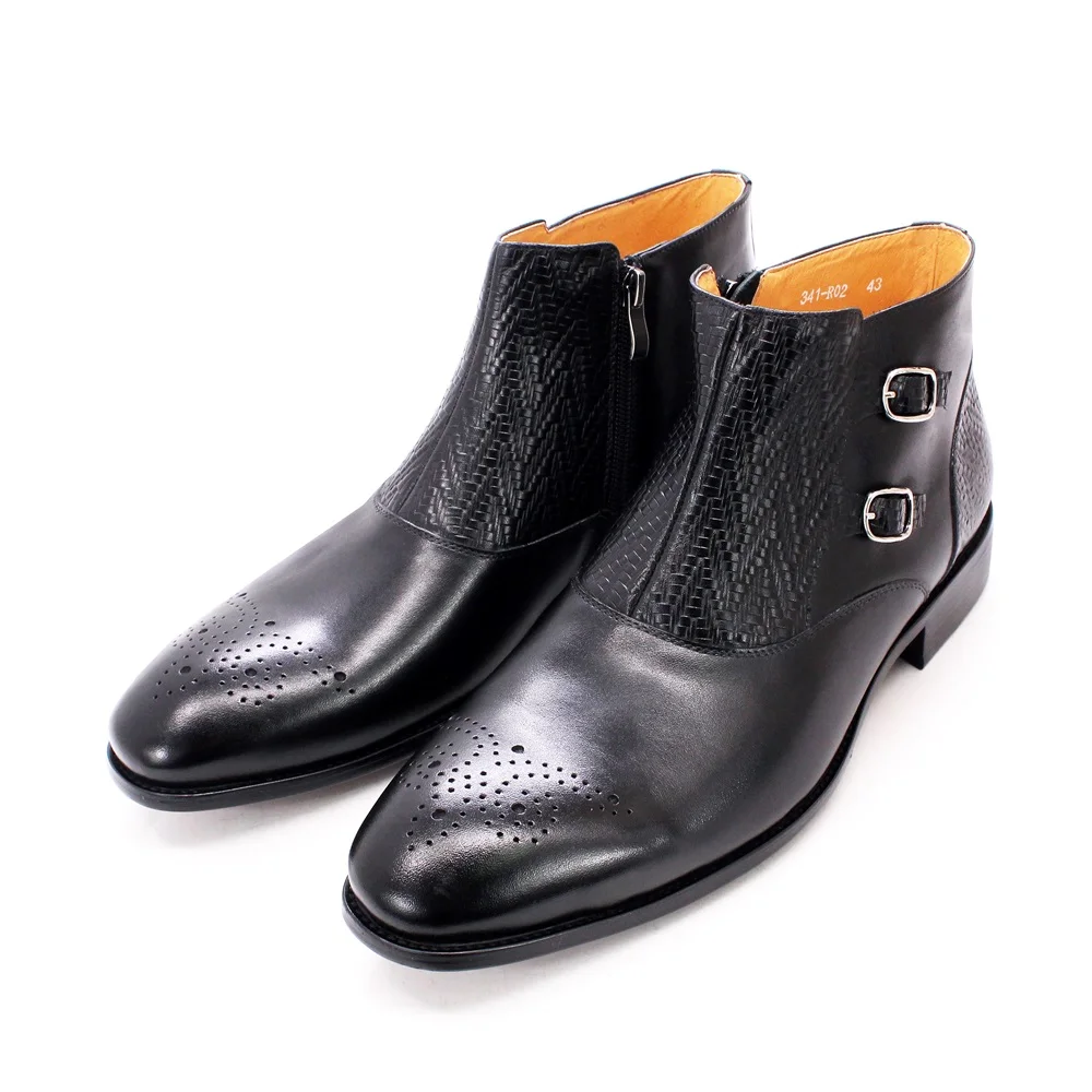 Мужские ботильоны в британском стиле из натуральной кожи ручной работы на молнии с ремешком и двойной пряжкой высокие модные классические ботинки черные мужские ботинки