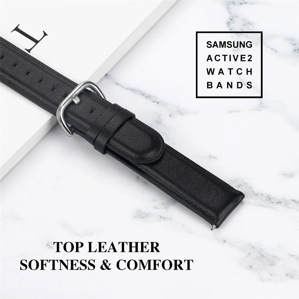 Ремешок кожаный для samsung galaxy watch active 2 40 мм 44 мм, спортивный браслет для смарт-часов, аксессуары для наручных часов, 20 мм
