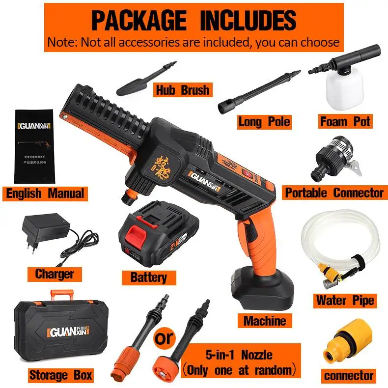 Мойка высокого давления GUANXIN, портативная, беспроводная, 20 в, с водяным насосом Форсунка генератора