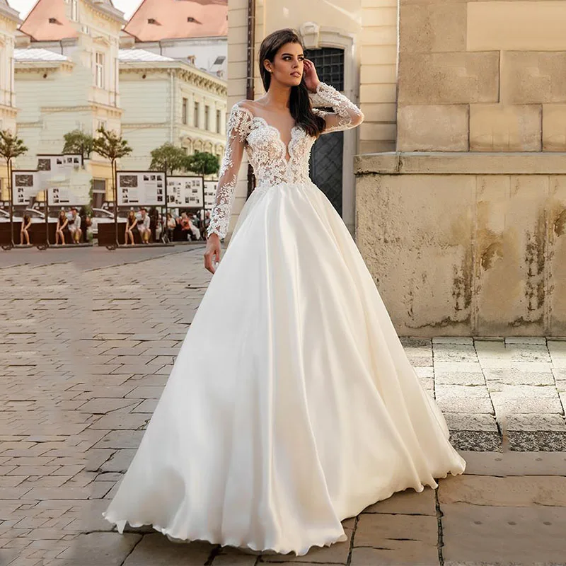 Женское свадебное платье с длинными рукавами, Кружевная аппликация ...