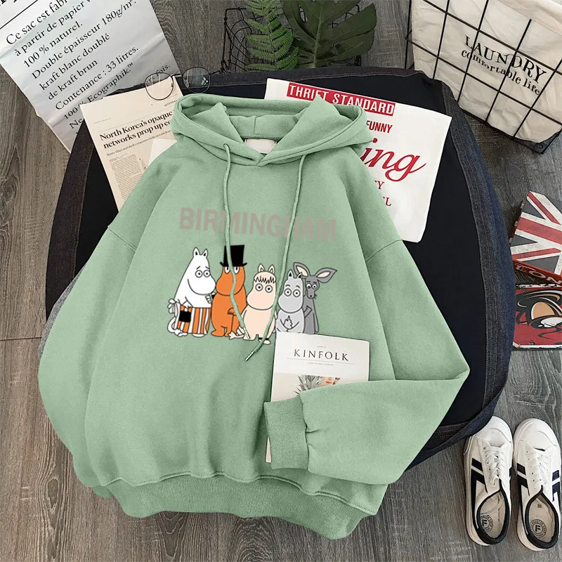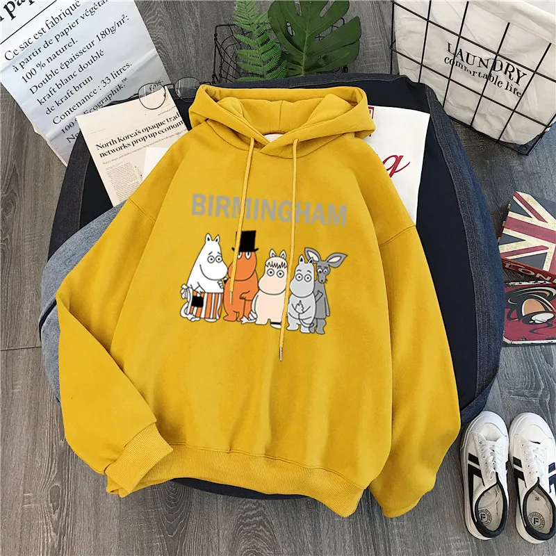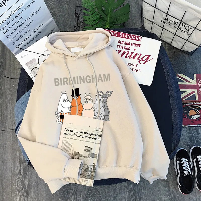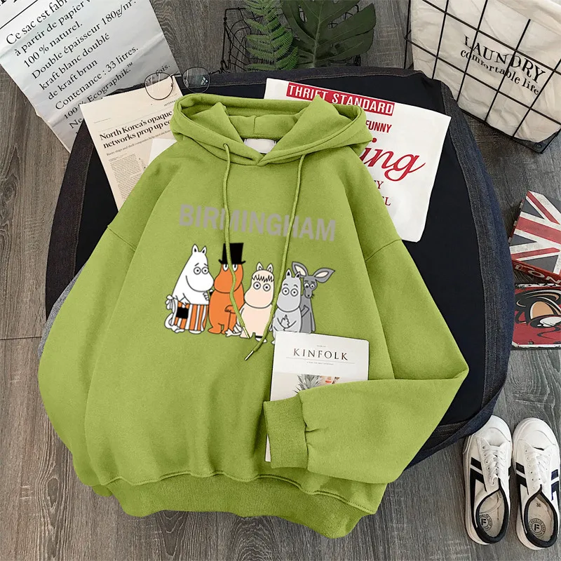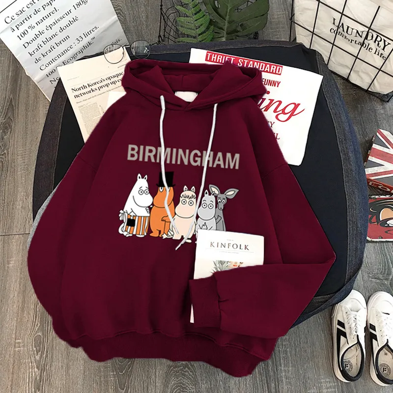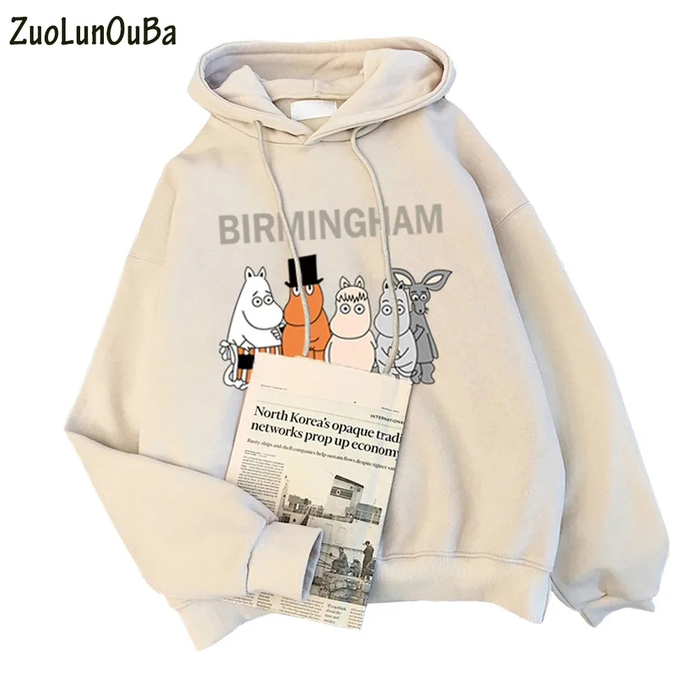 Женская флисовая толстовка с капюшоном, Свободный пуловер с длинным рукавом и мультяшным принтом в виде бегемота, теплая кофта с надписью, Осень-зима