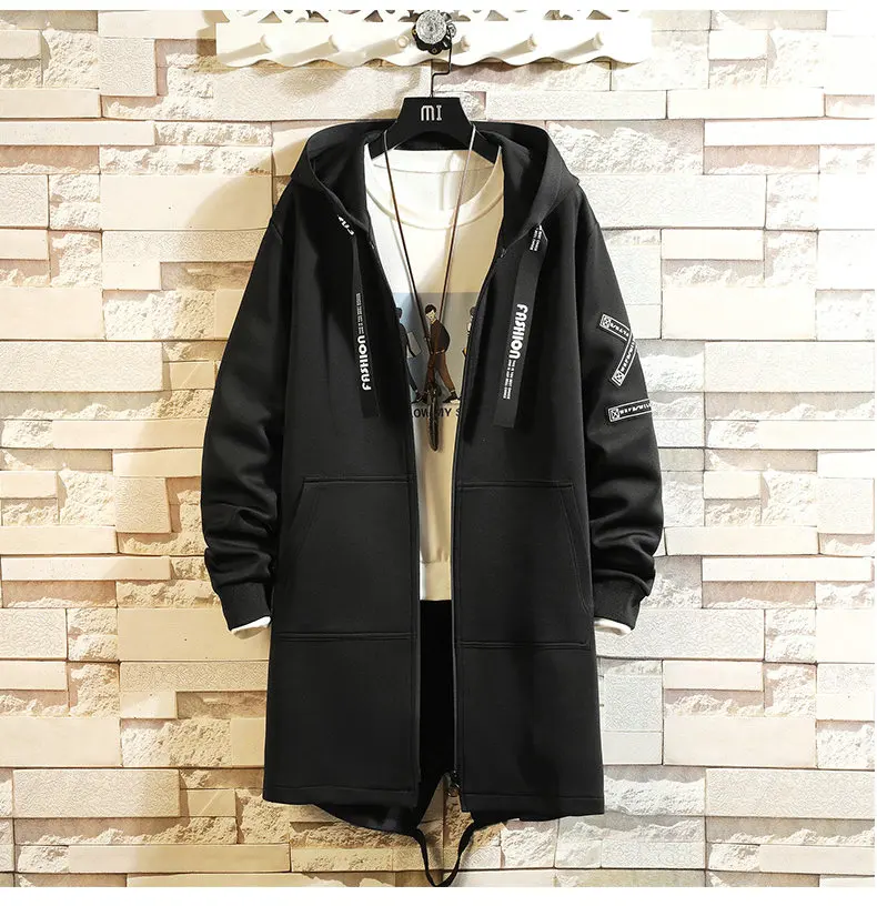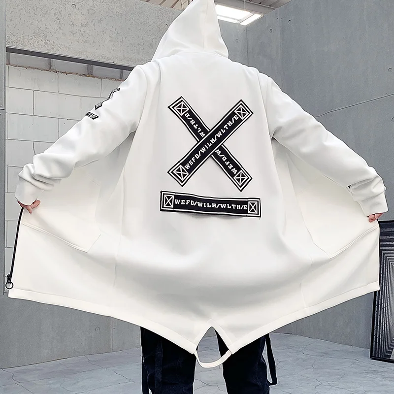 Уличная одежда мужская куртка с капюшоном, ветровка с принтом в стиле Харадзюку, пальто с лентами, мужской повседневный Тренч, верхняя одежда в стиле хип-хоп, пальто большого размера