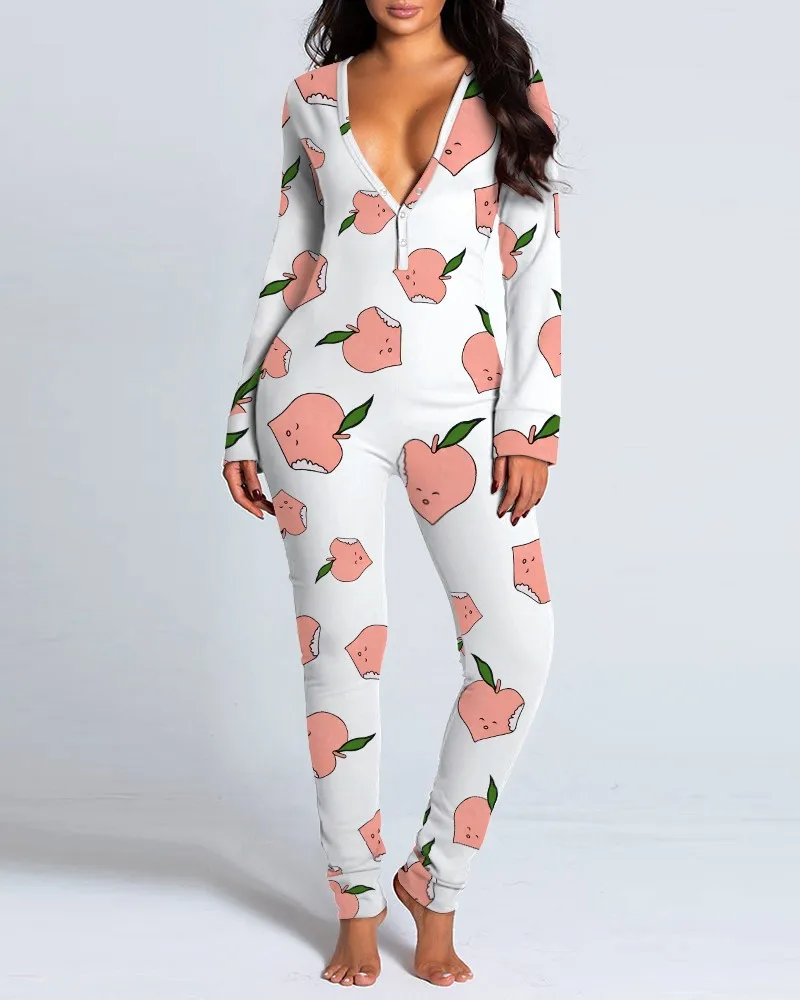 Женский комбинезон с V-образным вырезом, на пуговицах, с длинным рукавом
