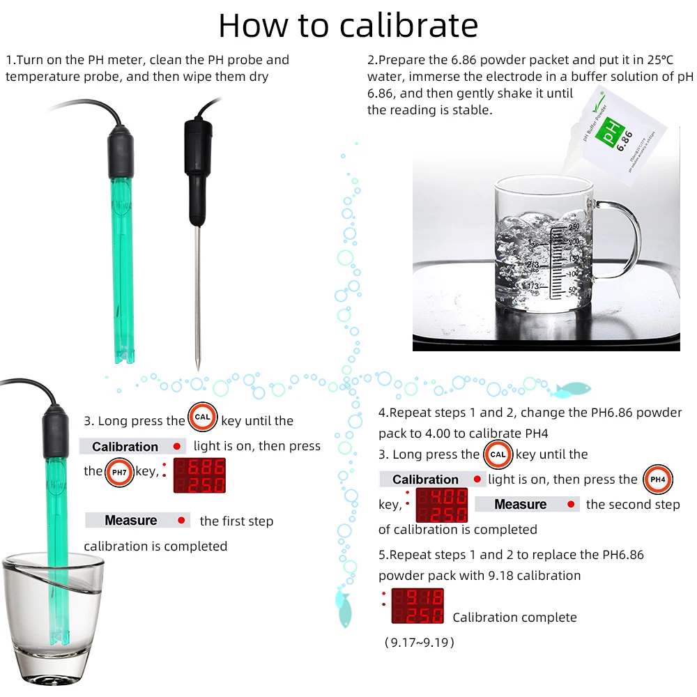 8.lmmerse электрод в PH9.18 буферном растворе. Ожидание стабилизации показаний до тех пор, пока дисплей не начнет считывать точные 9,18.