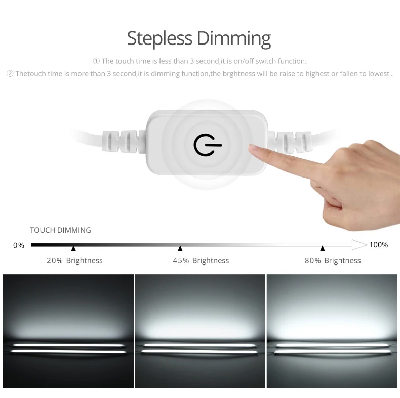 Цвет освещения: белый/теплый белый Тип переключателя: сенсорный переключатель Материал корпуса: алюминий Длина: 30 см/40 см/50 см Мощность: 5 Вт/6 Вт/7 Вт Напряжение: 12 В постоянного тока Адаптер питания: вилка европейского стандарта Цветовая температура: теплый белый (2800K-3000K)/белый (6000K-6500K) Средний срок службы (ч): более 35000 часов Расстояние обнаружения: 2-5 см CRI:80