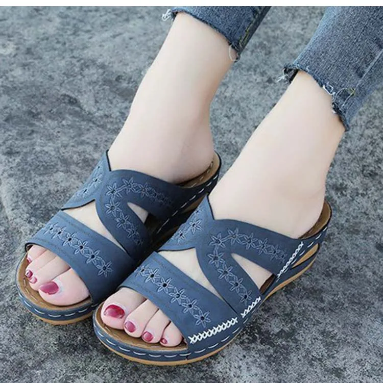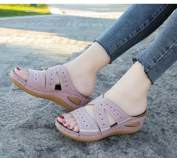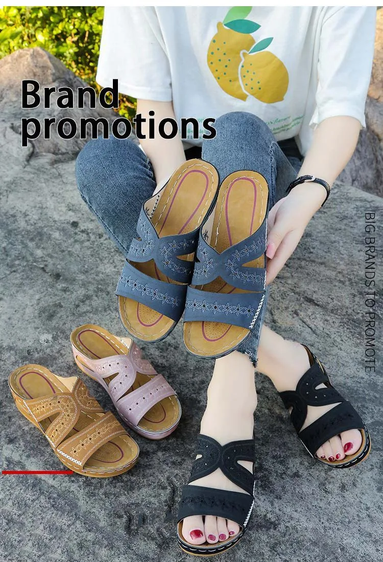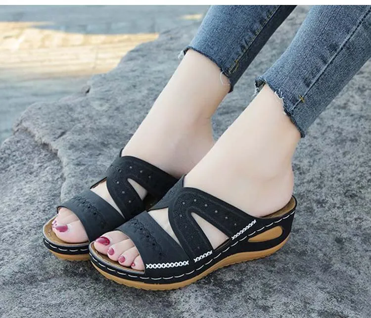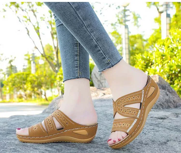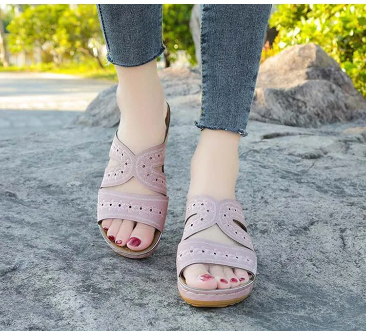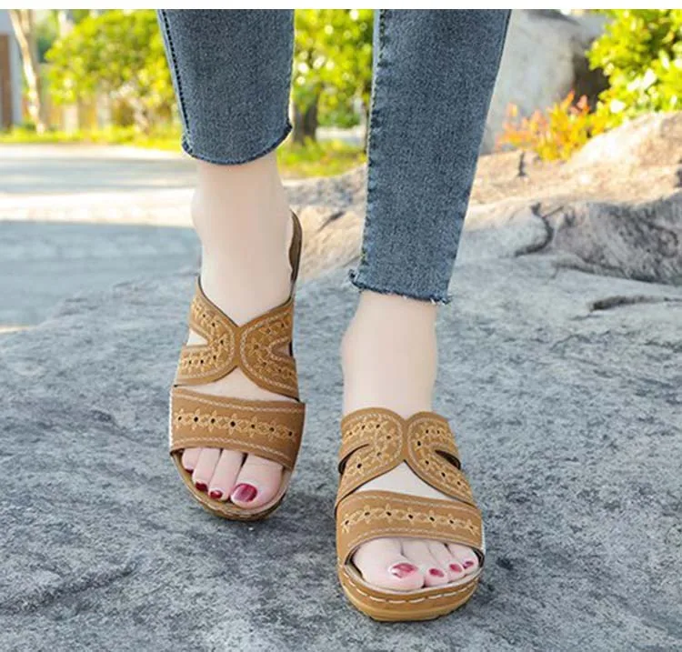 Женские босоножки; Босоножки на танкетке с вырезами; Женская обувь на платформе; Модные Этнические босоножки на плоской подошве; Женская обувь, Тапочки