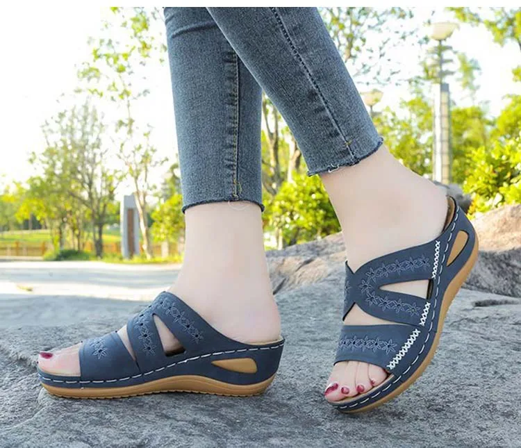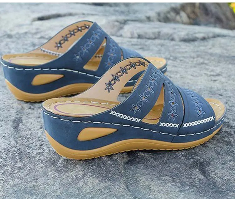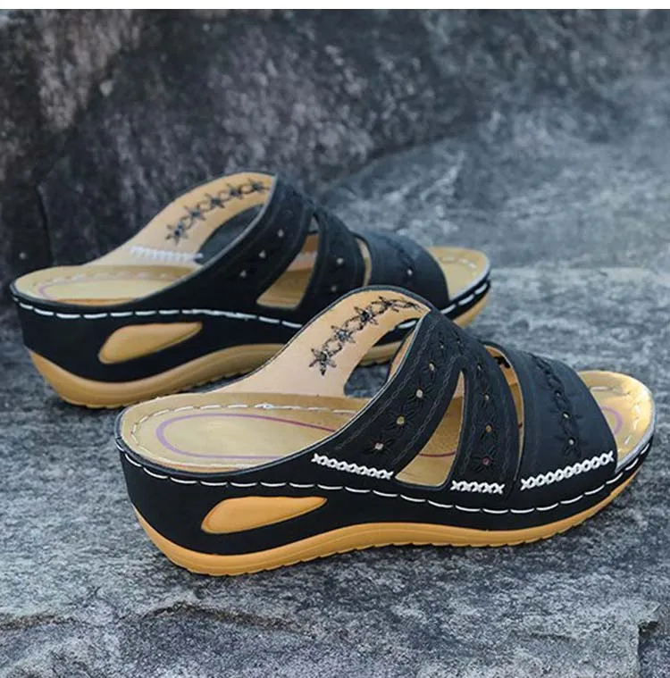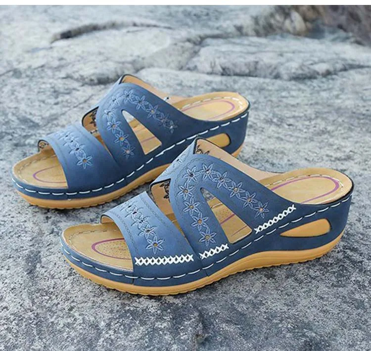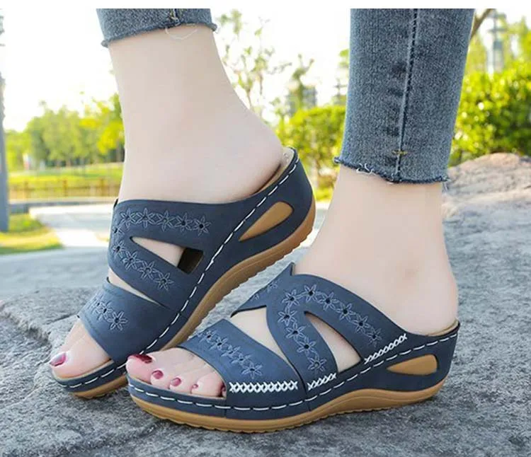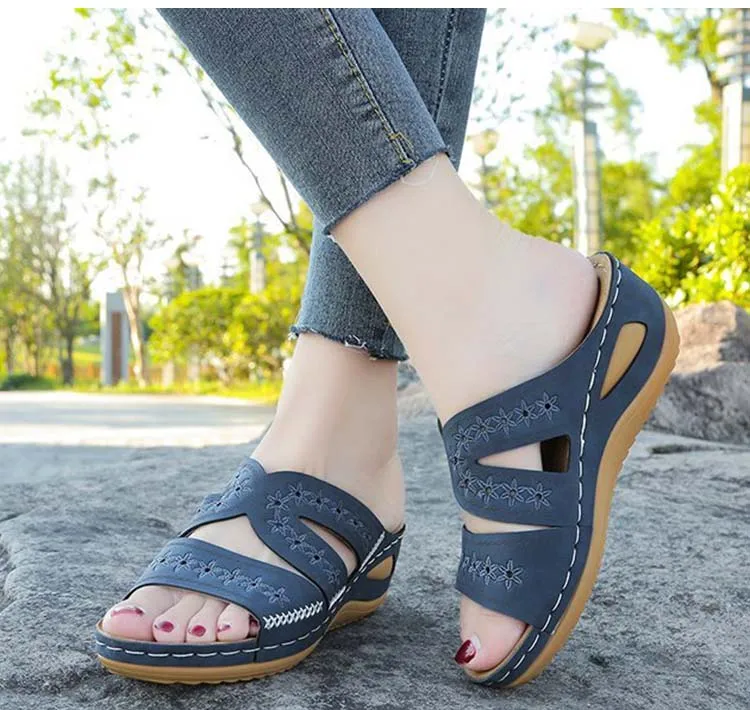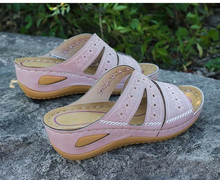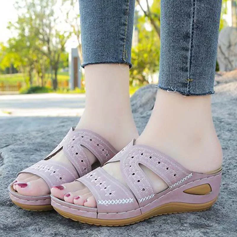 Женские босоножки; Босоножки на танкетке с вырезами; Женская обувь на платформе; Модные Этнические босоножки на плоской подошве; Женская обувь, Тапочки
