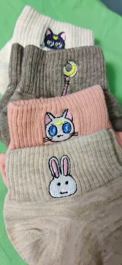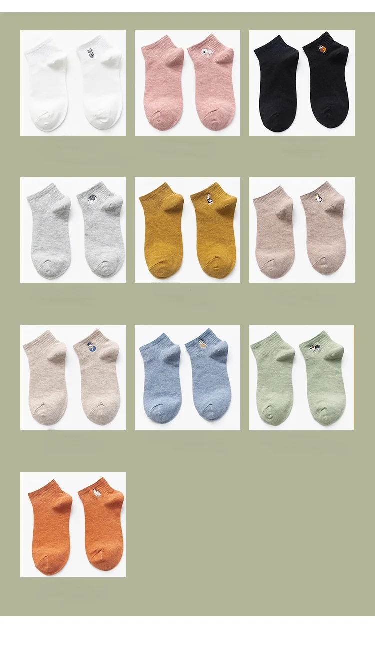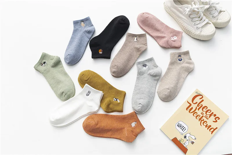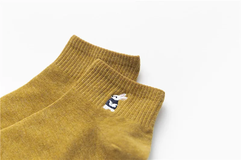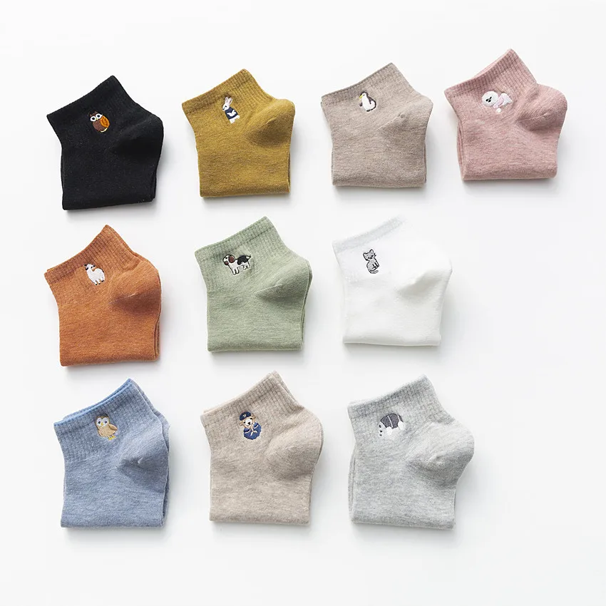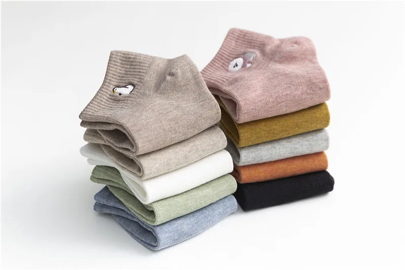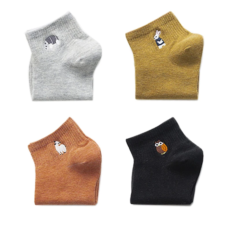 Носки Женские однотонные повседневные в стиле Харадзюку, милые хлопковые до щиколотки с носки с милыми животными и вышивкой, 4 пары, весна-лето
