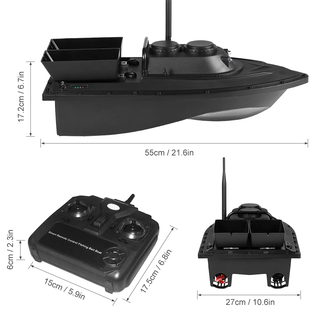Беспроводное управление позволяет выпустить приманку далеко в озере, и двойной силос может держать больше приманки для всех игровых рыб. Простота в эксплуатации для любителей рыбалки или начинающих. Характеристика: Дальность действия 400-500 м позволяет выпустить приманку далеко в озеро, где собираются рыбы. Двойной силос, около 4.4lb несущей способности для более приманки. Двойные двигатели и пропеллеры, плавно и качественно перемещаются по поверхности воды. Обтекаемый корпус снижает Водонепроницаемость и устойчивость к волнам до 5. 2 передних фонаря предназначены для ночной рыбалки. Спецификация: Материал: пластик Грузоподъемность: 2 кг/4,4 фунта Дистанционный диапазон: 400-500 м Размер хоста: 55*27*17,2 см/21,6*10,6*6,7 дюймов Вес хоста: 1862 г/4,1 фунта Посылка Вес: 2857 г/6.2lb Посылка: 1 * умная рыбацкая лодка 1 * пульт дистанционного управления 1 * штекер 1 * набор аксессуаров
