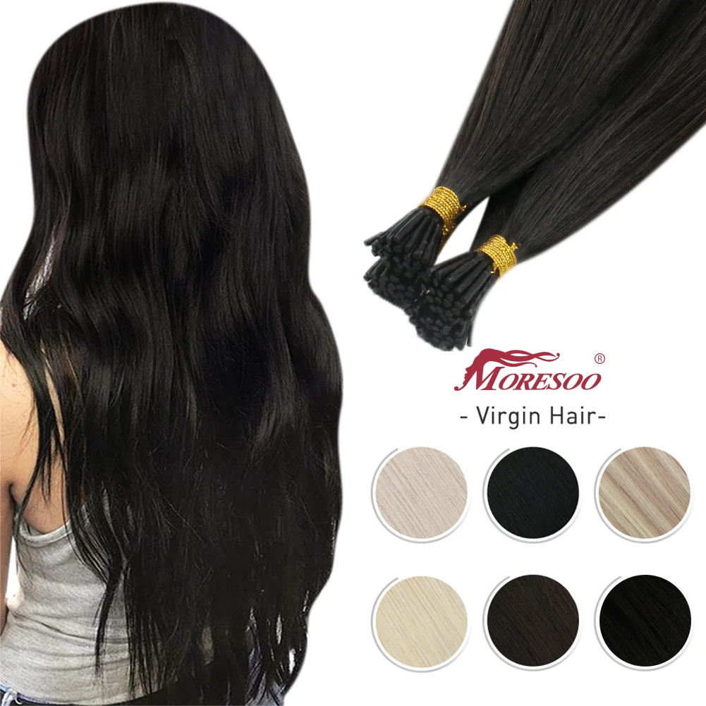 Moresoo натуральные волосы для наращивания Itip, человеческие волосы для наращивания, класс 10 А, высокое качество, бразильский кератин, Fusion, двойной натянутый I-образный кончик 0,8 глокон