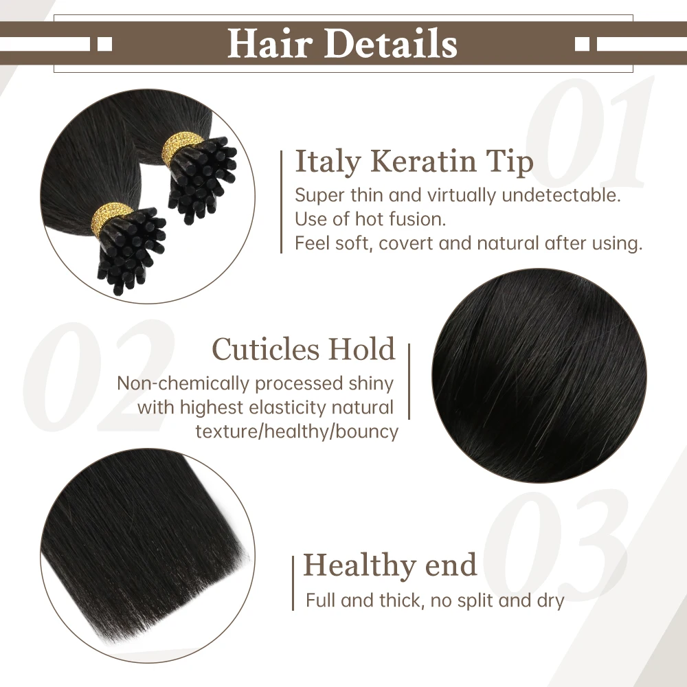 2. Стиль волос: девственные волосы I-tip для наращивания волос