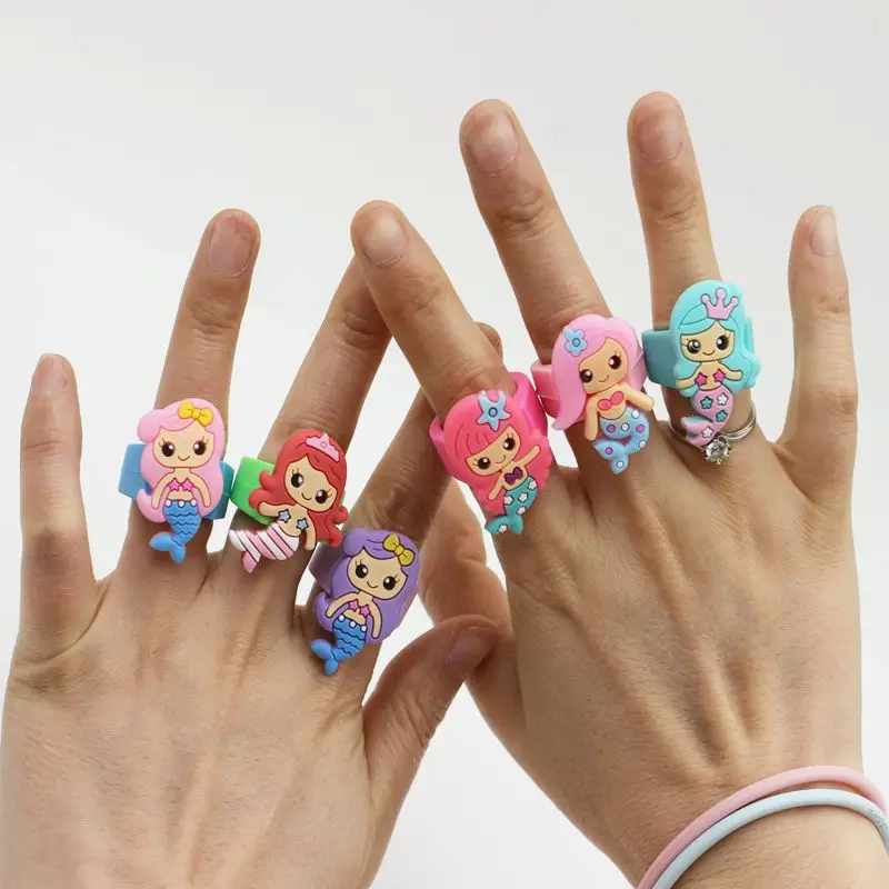 Детское кольцо Русалка из ПВХ, детское кольцо, кольцо русалки принцессы, украшение на день рождения, Детская Девочка Русалка, тематические кольца, подарок для гостей