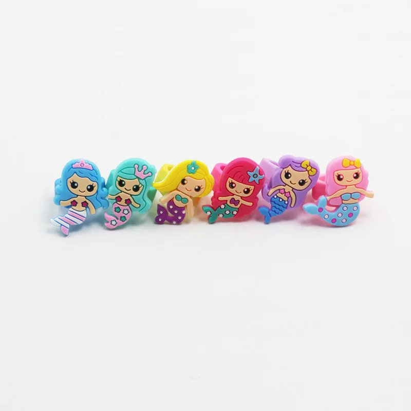 Мультяшные кольца в виде русалки для девочек, 6 шт., детские мягкие...