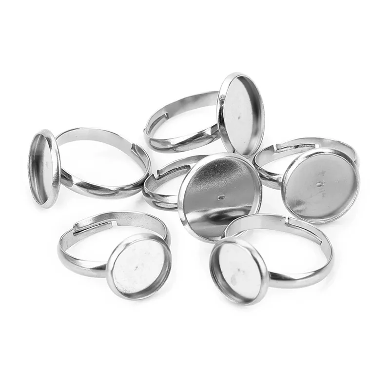 Регулируемый держатель для кольца из нержавеющей стали 20 шт., основа для стеклянного кабошона сделай сам, принадлежности для изготовления ювелирных изделий, 8, 12, 14, 16, 20 мм