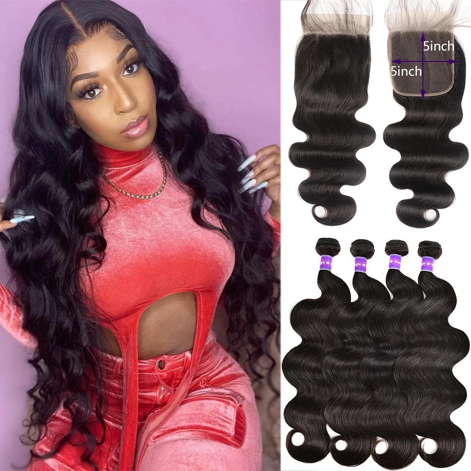 HD 5x5 волнистые пряди с закрытием Малазийские Волосы Remy человече...