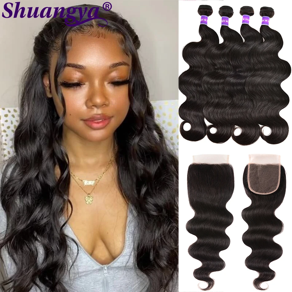 Бразильские волнистые волосы, пряди с кружевной застежкой, 4x4 дюйм...