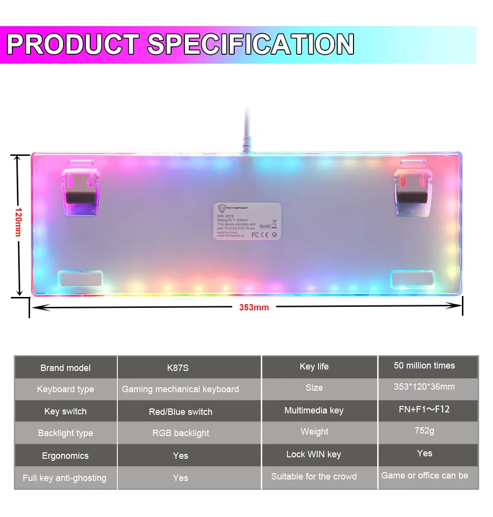 Номер моделиK87S RGB Gaming Mechanical Keyboard