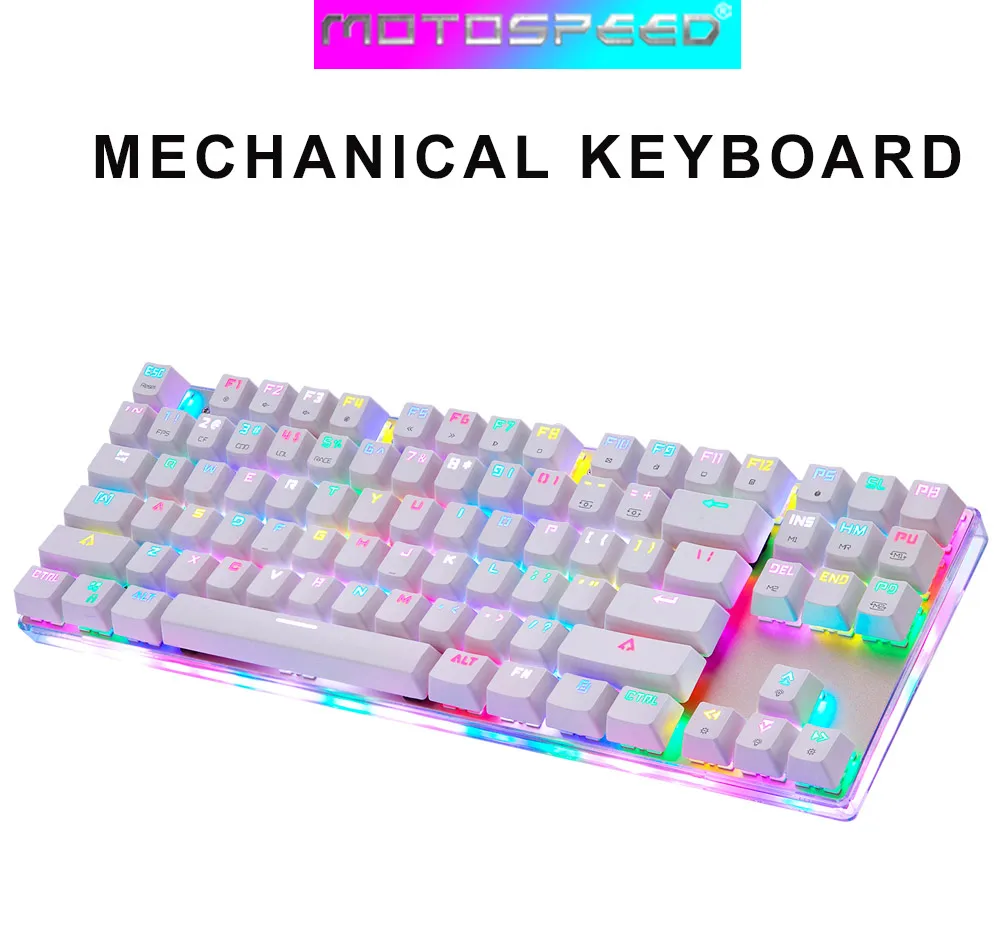 Игровая механическая клавиатура MOTOSPEED K87, проводная клавиатура с синейкрасной осью и RGB подсветкой, 87 клавиш, с защитой от фиктивных нажатий, для ПК, ноутбуков и геймеров