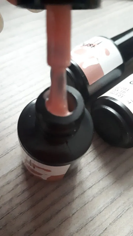 Бутилочки пластмасові 7 мл., але повні. Наноситься легко, вирівнюється, не рідкий і не густий, середня консистентенція. Наносила у два тонких слоя, просохало за 30 с., але другий слой чорного і темних відтінків 1 мин. Маю небагато клієнтів, для мене це ідеальний варіант. Колір гель лака співпадає з фото продавця. Мені сподобалися, візьму ще. Продавця рекомендую.