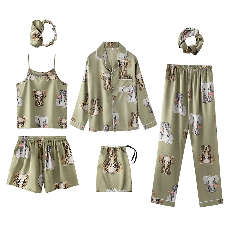 Пижамный комплект Женский из искусственного шелка, 7 предметов
