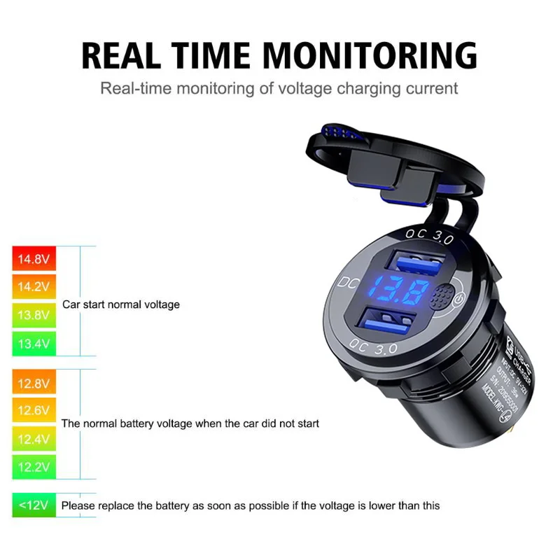 Особенности:Подходит для DC 12V-24V автомобиля, лодки, морской, мотоцикл и т. Д.Два usb-порта, поддержка быстрой зарядки QC3.0Можно заряжать два устройства одновременноАвтоматическое определение ваших устройств и обеспечение оптимального тока для максимальной эффективности зарядкиРазработан с помощью светодиодный вольтметр для реального времени мониторинга батареиПластиковая крышка для водонепроницаемого и пылезащитногоИзготовлен из высококачественного нейлона и алюминиевого сплаваСпецификация:Входное напряжение: 12-24 ВВыход USB: 5 В/3 А постоянного тока; 9 В/2 А; 12 В/1,5 АМатериал изделия: алюминийРазмер: около 50x36.8x28.6 ммПосылка включает в себя:1 x QC 3,0 Автомобильное двойное USB зарядное устройство с светодиодный вольтметр на выключенном выключателе
