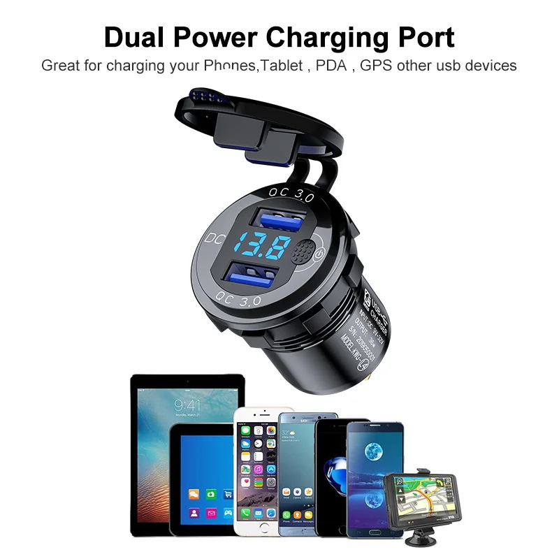 12V24V зарядных порта USB для автомобиля Зарядное устройство Dual Порты Водонепроницаемый гнездо QC3.0 для быстрой зарядки с usb-портом, Зарядное устройство Разъем адаптер розетка для машине мотоцикле лодке