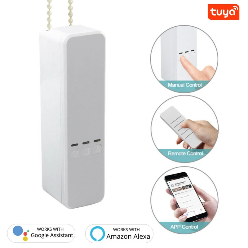 Ручные жалюзи, управляемые цепочкой, с нашим контроллером, открываются и закрываются автоматически. С приложением или пультом дистанционного управления.