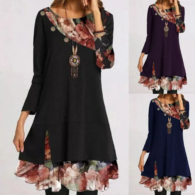 Женское лоскутное платье с цветочным принтом, Элегантное повседневн...