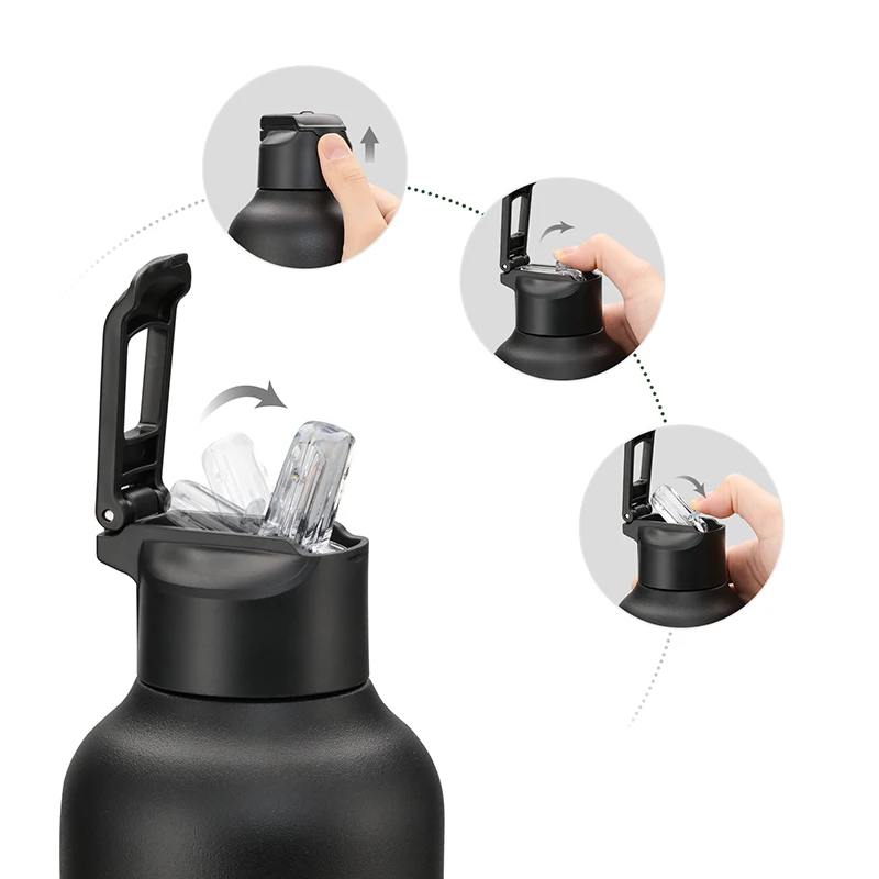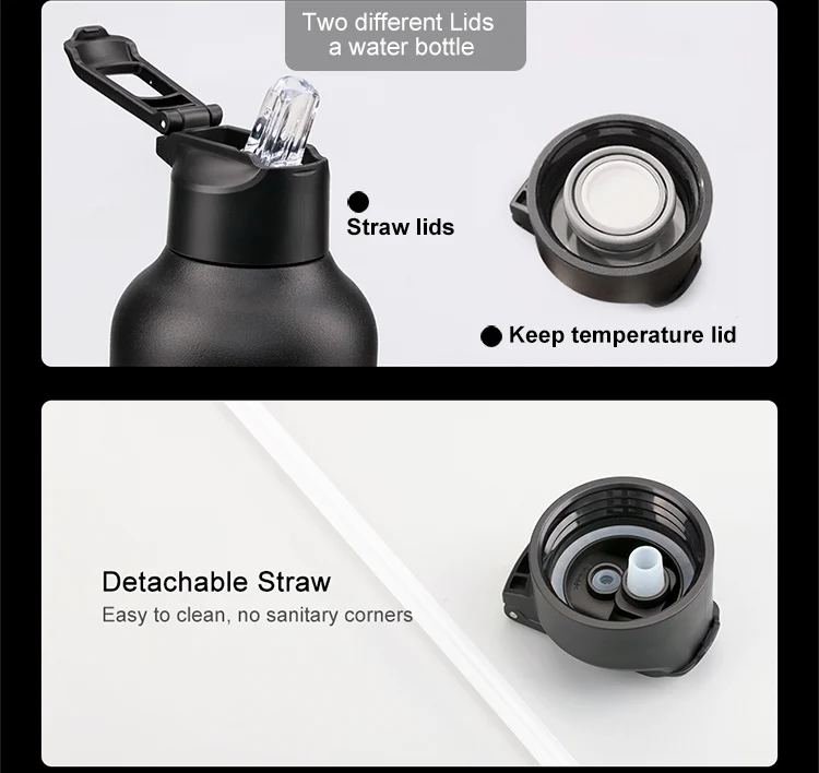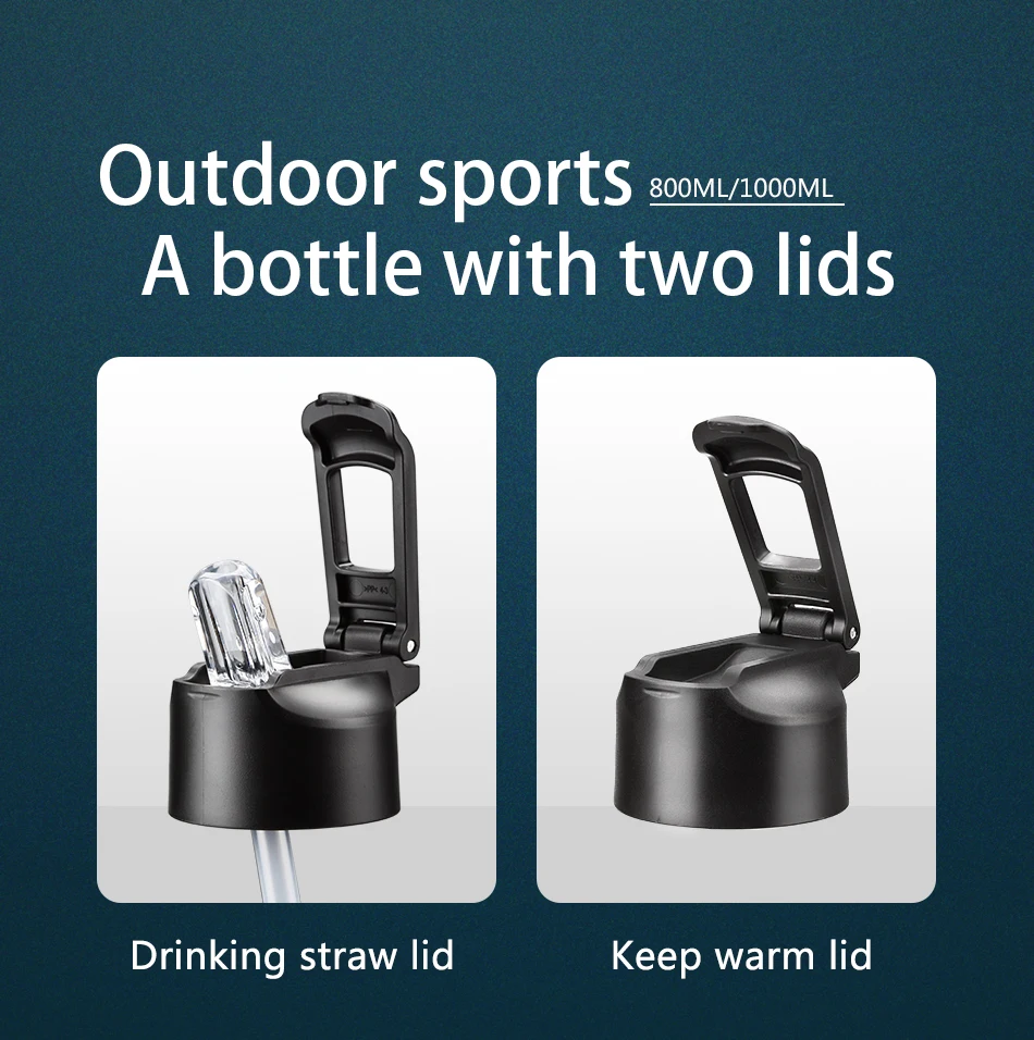 27oz 34oz Новая бутылка для воды из нержавеющей стали с соломинкой, прямой питьевой 2 крышки, вакуумные фляжки, изолированная дорожная портативная Термокружка, термос