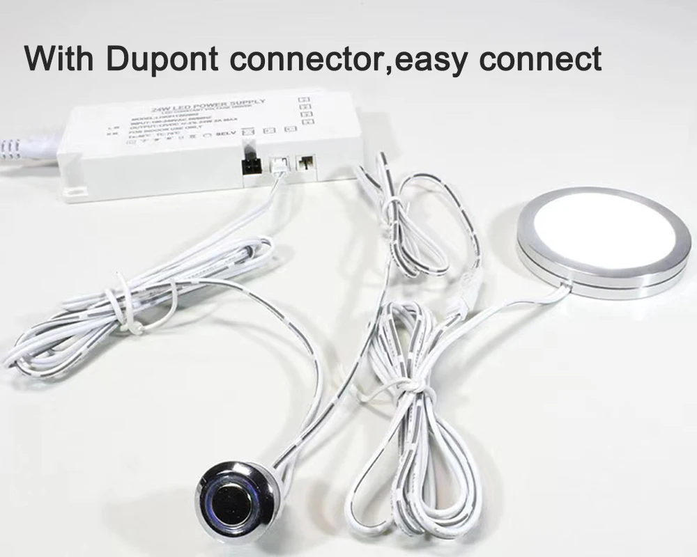 Заказал 4 сенсорных выключателя с диммером у этого продавца. Товар соответствует описанию. Сразу протестировал. Короткое прикосновение включает/отключает ленту, а длинное прикосновение - уменьшает/увеличивает яркость. Уровень яркости запоминается при выключении. Подсветка кнопки голубого цвета все 4 (я просил все одинаковые, но у продавца кажется только голубого цвета), подсветка не гаснет при включении (вдруг для кого-то есть разница, лично для меня без разницы). Планирую использовать в сети постоянного тока на 24в (24V DC). В комплекте с выключателем идет 2 сдвоенных клеммника (мне соответственно, пришло 8 клеммников), а также продавец отправил мне полметра светодиодной ленты на 12в (в подарок, надо полагать).