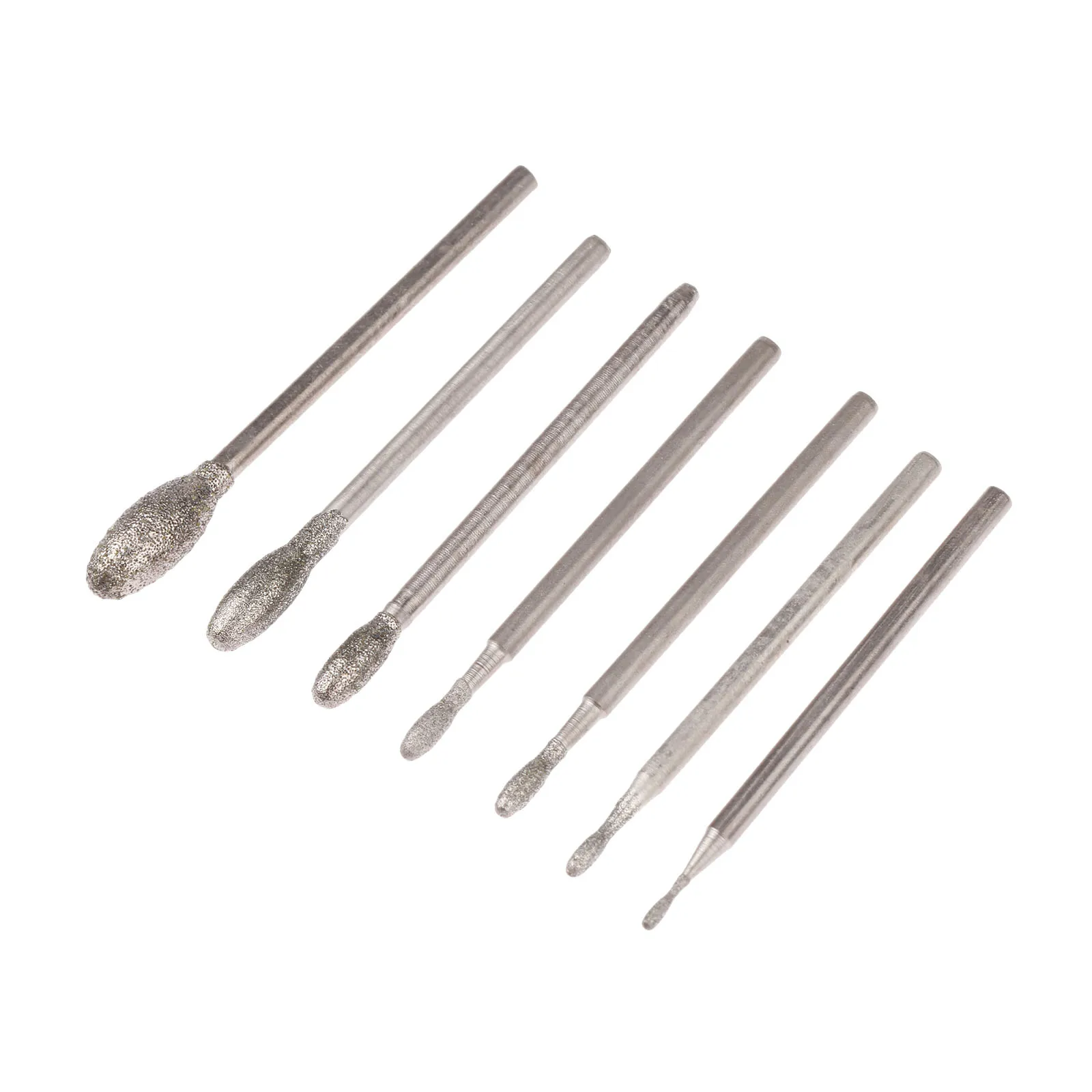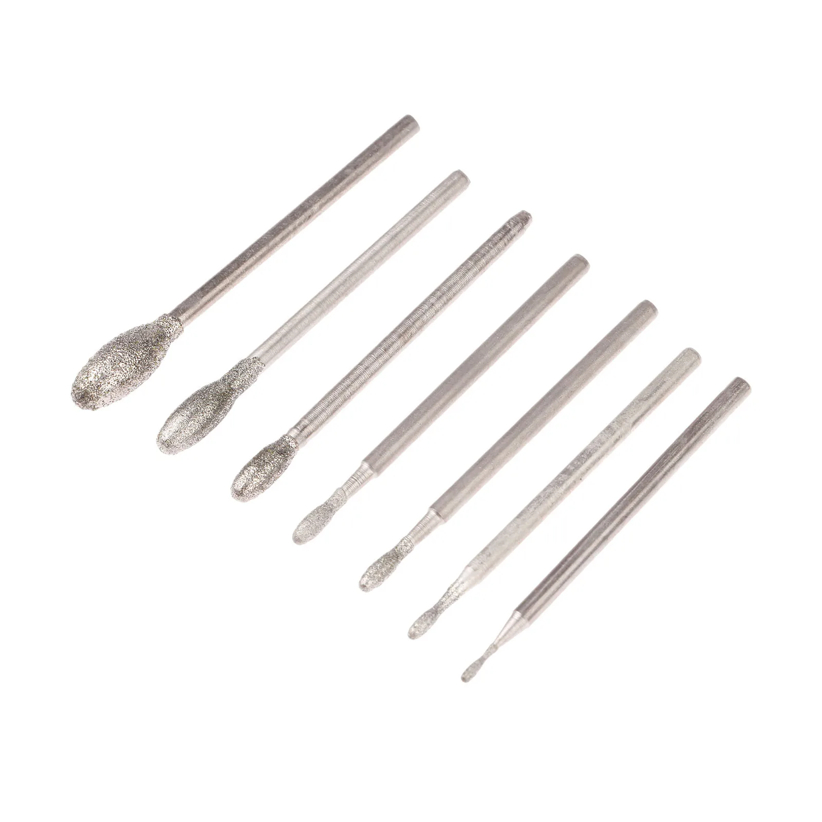 7 шт. 1,2-5 мм Диаметр овальной алмазной шлифовальной головки сверла 2,35 мм хвостовик Нефритовая резьба полировка Гравировка Инструменты Аксессуары Dremel