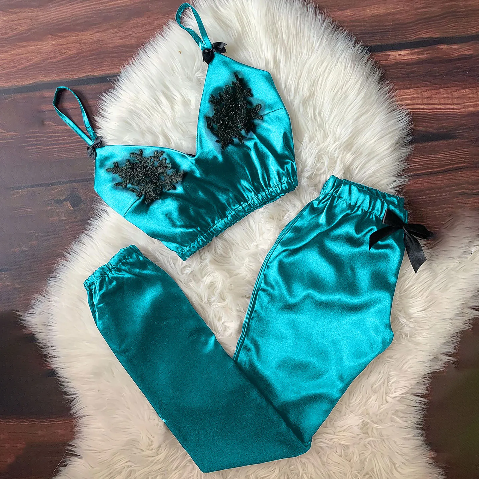 Номер моделиWomen V-Neck Eyelash Lace Sexy Stain Camisole Pajamas Bowknot Pants Se