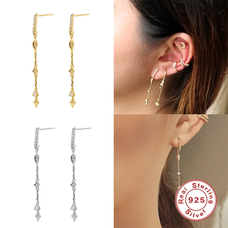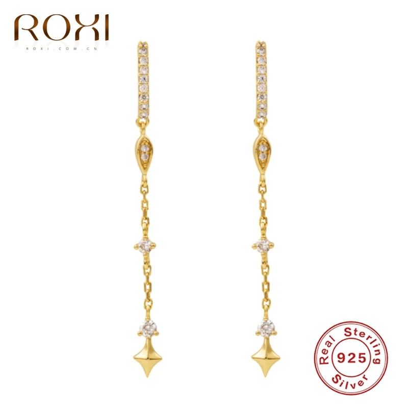 ROXI элегантные Висячие кристаллы слез серьги гвоздики для женщин длинные серьги геометрической формы Пирсинг 925 пробы серебряные серьги