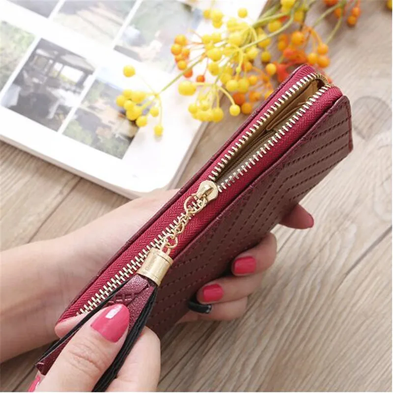 2021 женские длинные кошельки, клатч, Белый высококачественный Кожаный Дамский кошелек с бахромой и молнией, держатель для телефона, монет и карт, наличные чеки