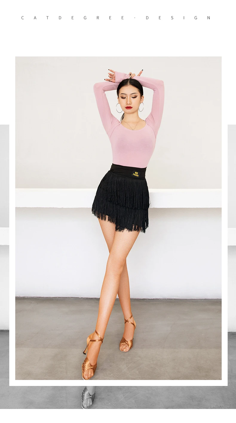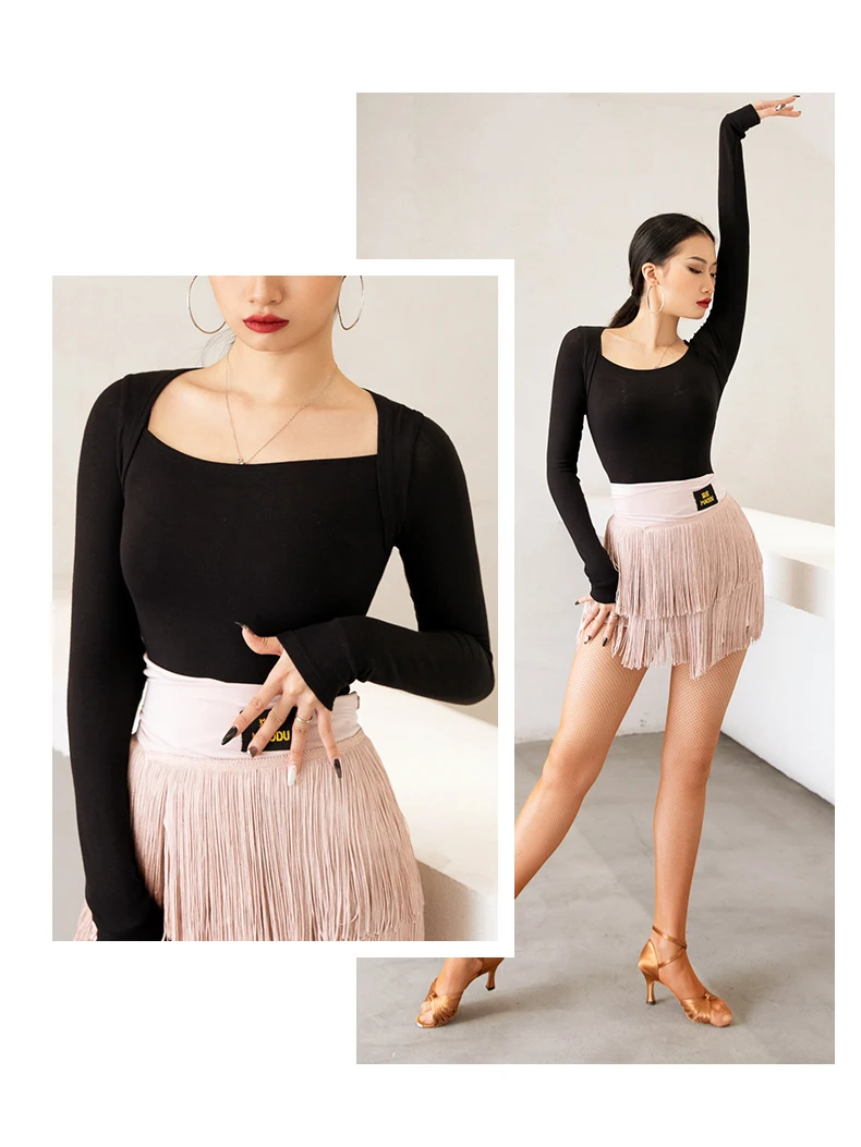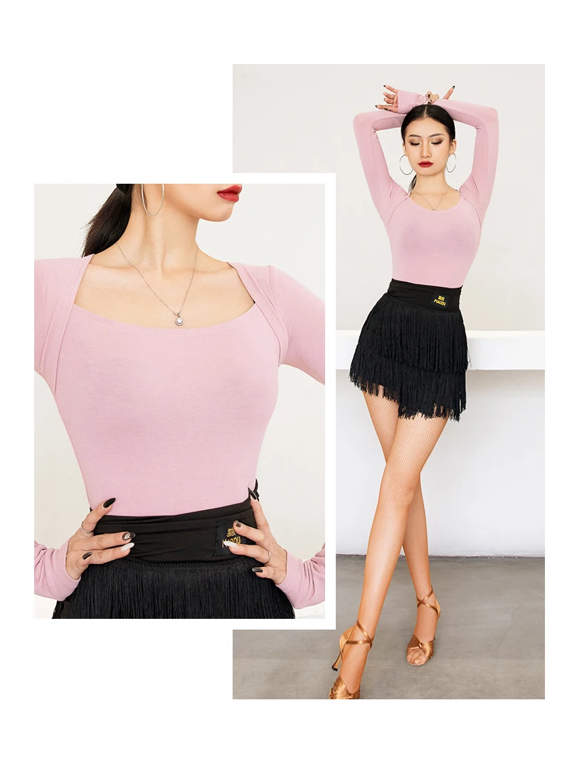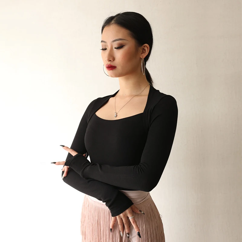 Латино-американских танцев топы с длинным рукавом для латинских танцев тренировочная майка Одежда для бальных танцев женские современные для самбы, ча-ча, сальсы Топы BL5274