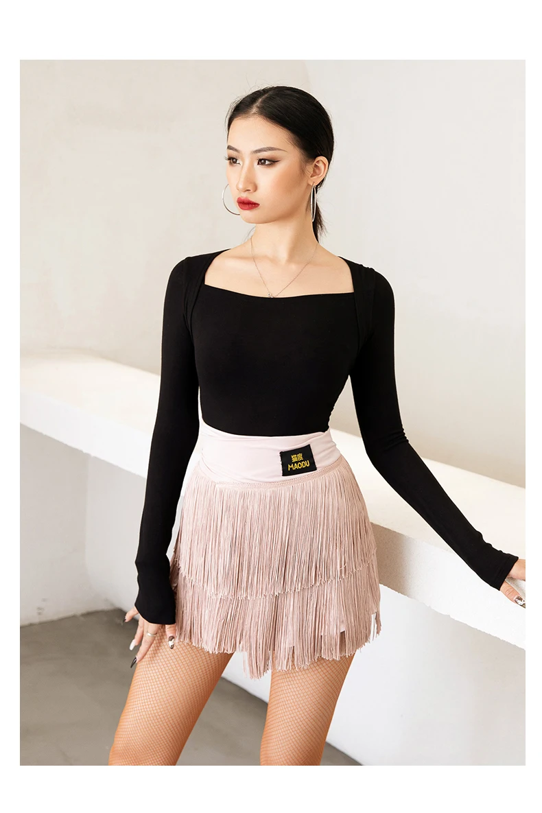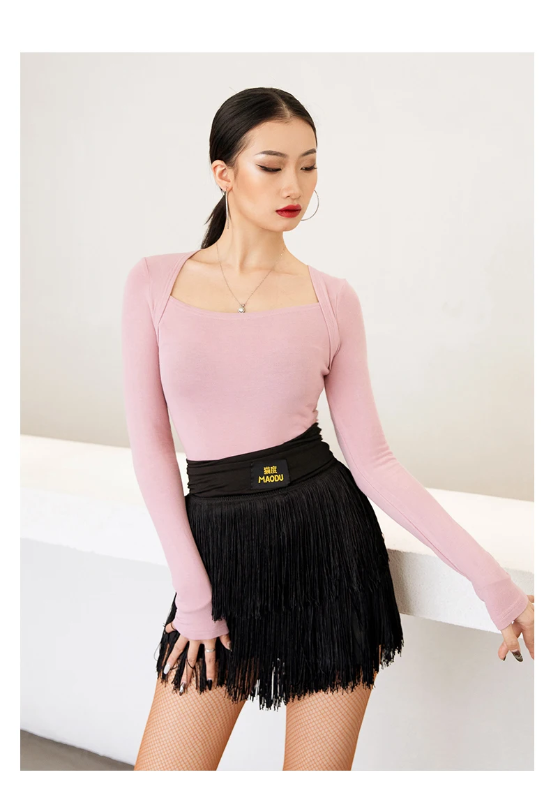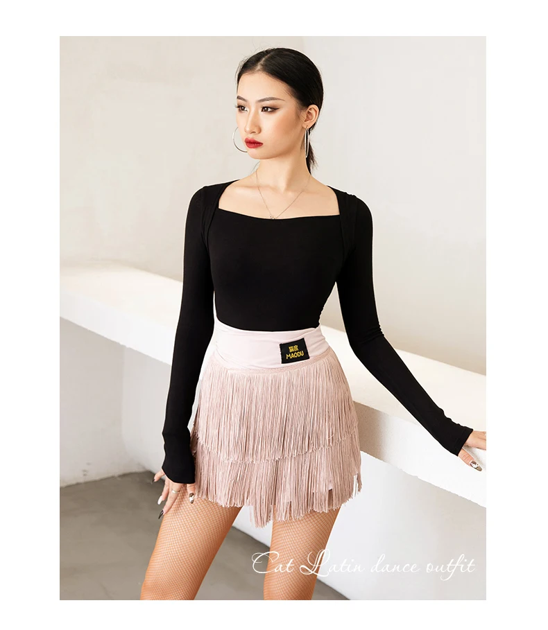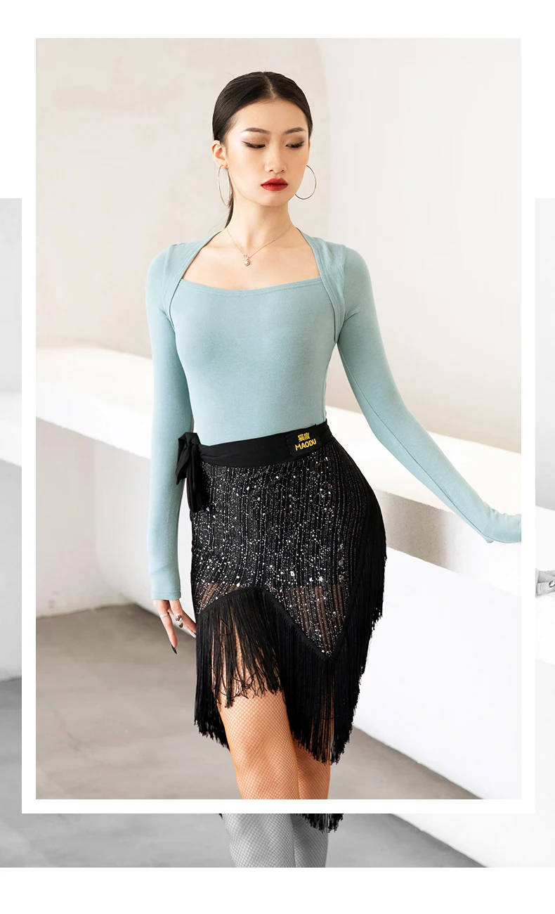 Латино-американских танцев топы с длинным рукавом для латинских танцев тренировочная майка Одежда для бальных танцев женские современные для самбы, ча-ча, сальсы Топы BL5274