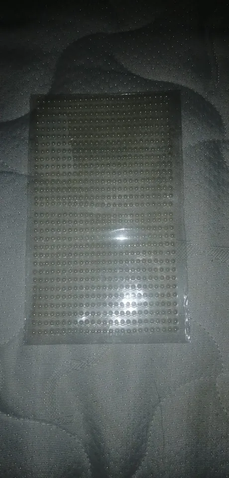 Доставка с момента заказа 25 дней. Соединили с другими заказами. Описанию соответствует. С продавцом не общалась. Половинки бусинок на клейкой основе.