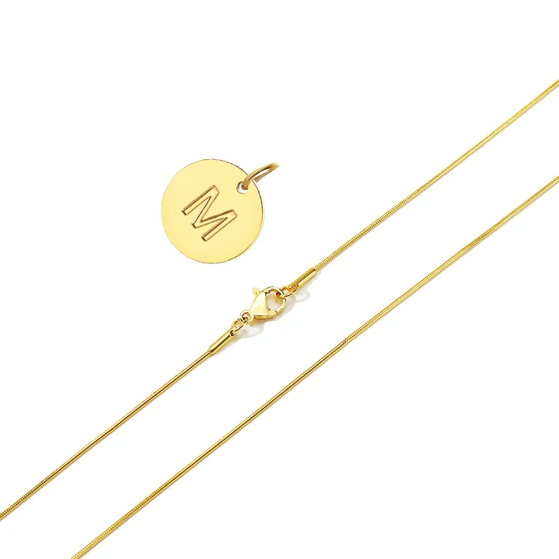 Пользовательские Начальная A-Z Алфавит Монета ожерелья для женщин, основной из нержавеющей стали ожерелье с круглой подвеской, воротниковые ювелирные, с змея цепи 50 см