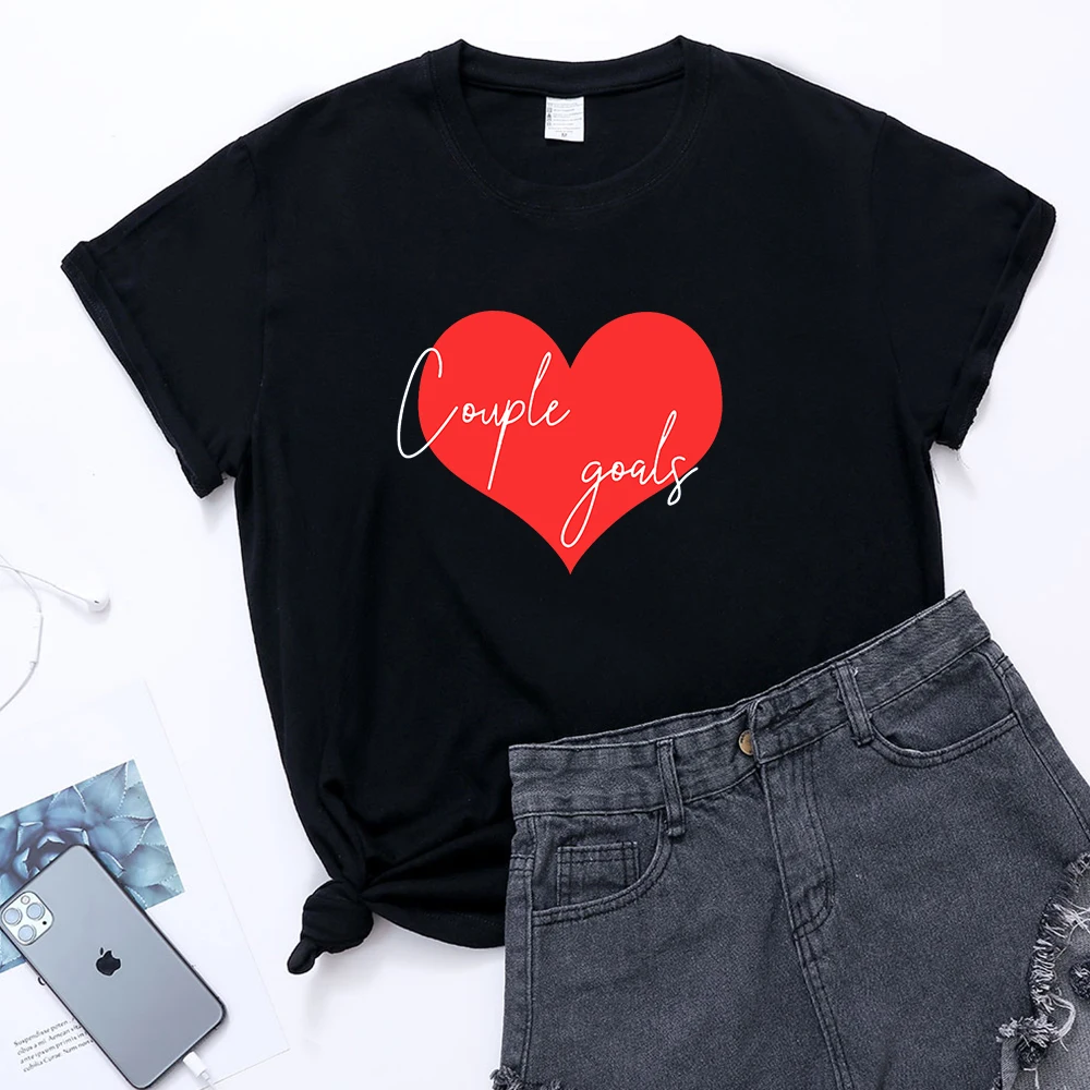 Женская футболка для пары, Милая футболка с забавным принтом в стиле Харадзюку, красивые футболки с графическим принтом, модные топы на День святого Валентина