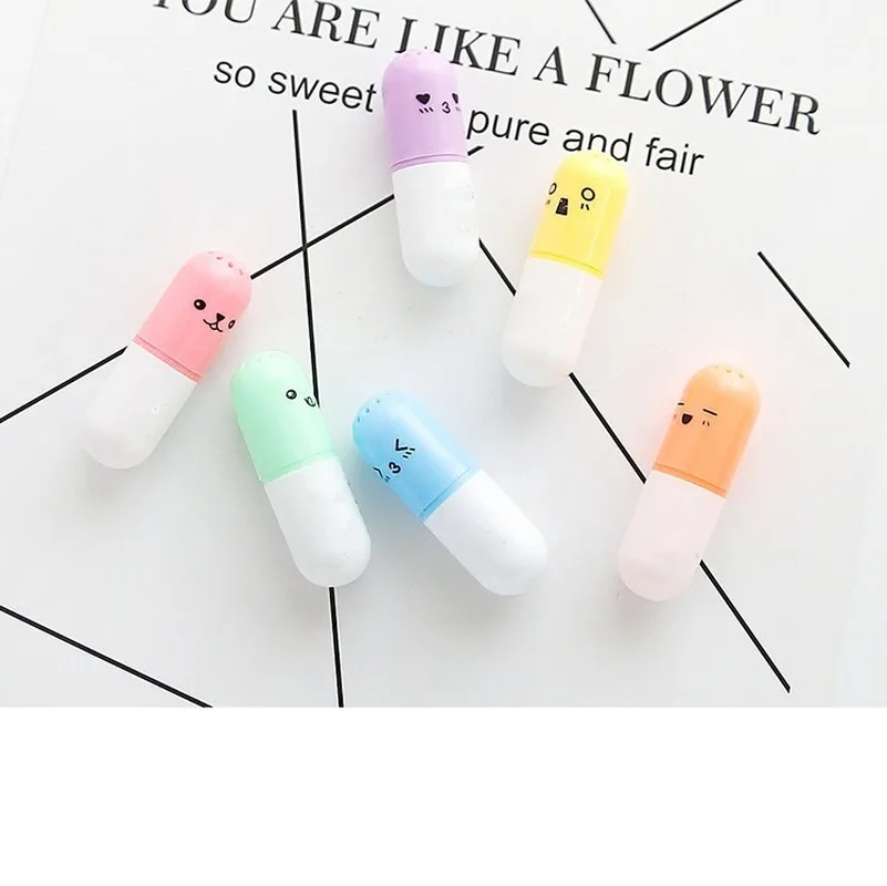6 шт.Лот Мини капсулы хайлайтер ручка витамин таблетка маркер цветные ручки канцелярские принадлежности для офиса школы основа для маркеров