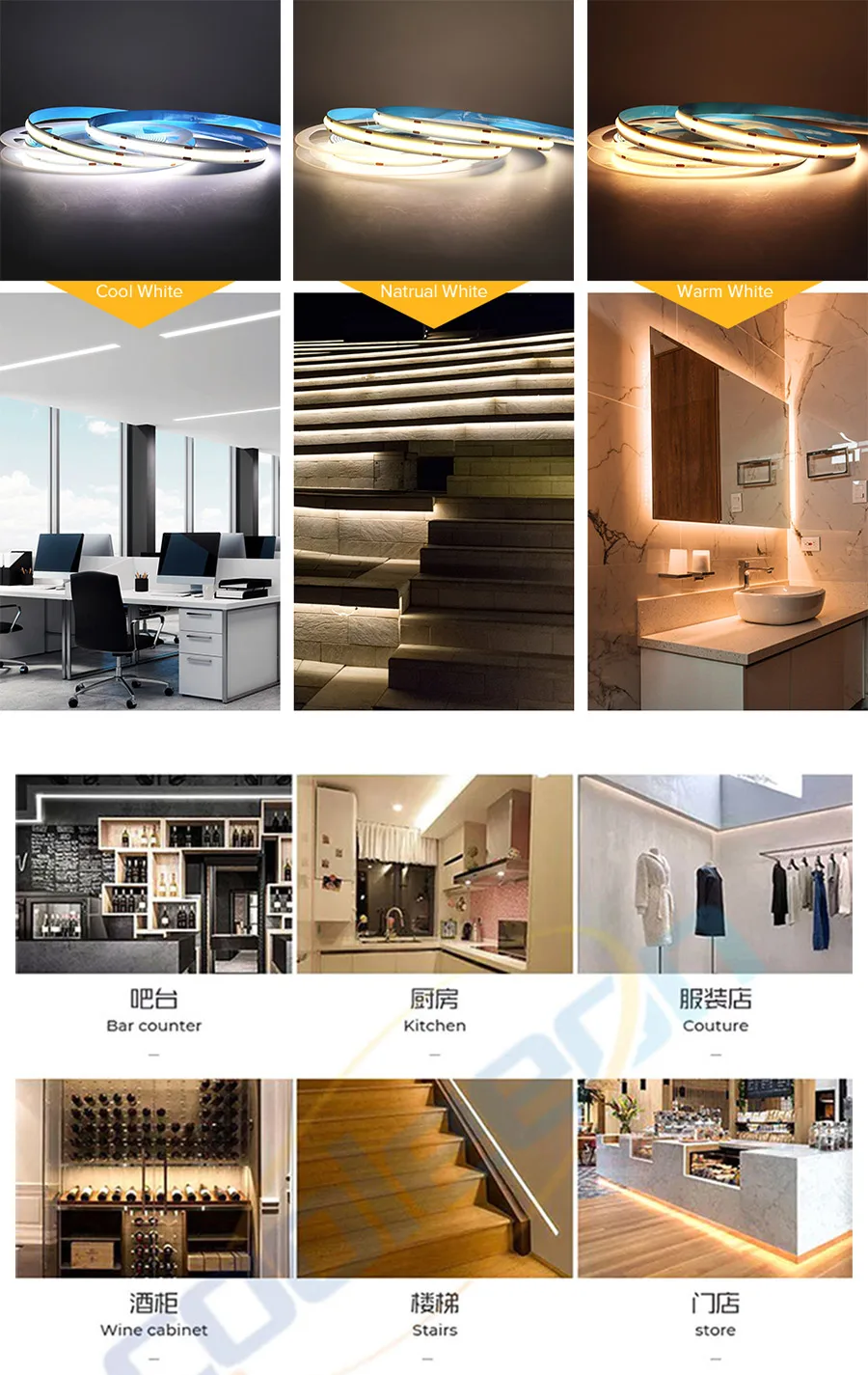 1. Пожалуйста, не подключайте полосу непосредственно к 110 В или 220 В, полосе нужен трансформатор 12 В/24 В!2. Длина ленты COB составляет 50 см за штуку, различная длина соединяется многими полосками 50 см. Так что есть некоторые Соединенные точки на COB полосе, это очень нормально, соединенные точки не влияют на эффект освещения или качество прокладки!