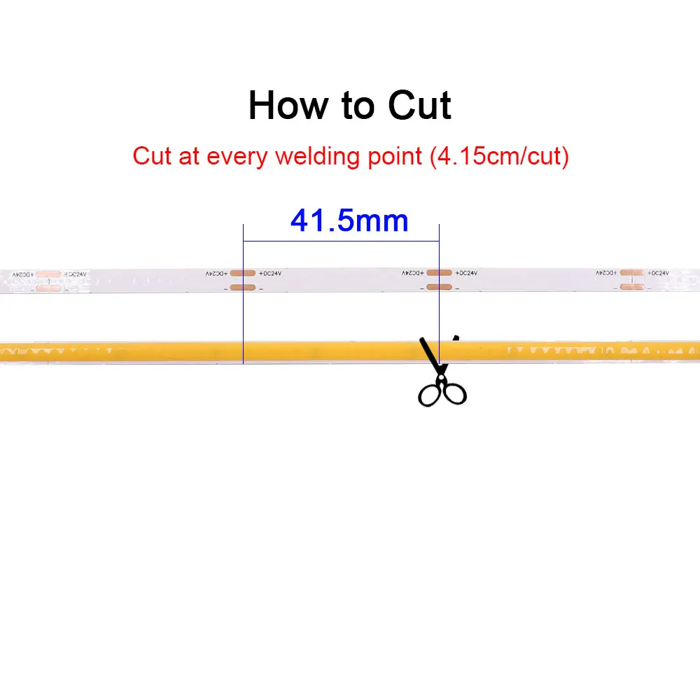 Точки резания на задней части COB полосы!4,15 см/крой!Необходимо отрезать ленту в режущих точках!