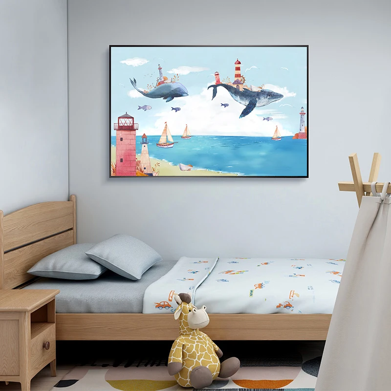 Картина на холсте в скандинавском стиле с изображением китов, осьми...