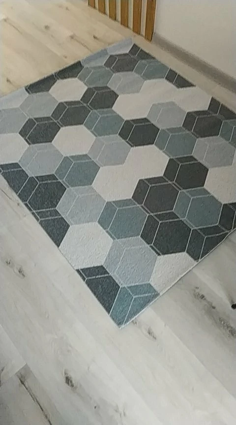 Коврик красивый, больше в серый оттенок чем в синий. Пахнет.
