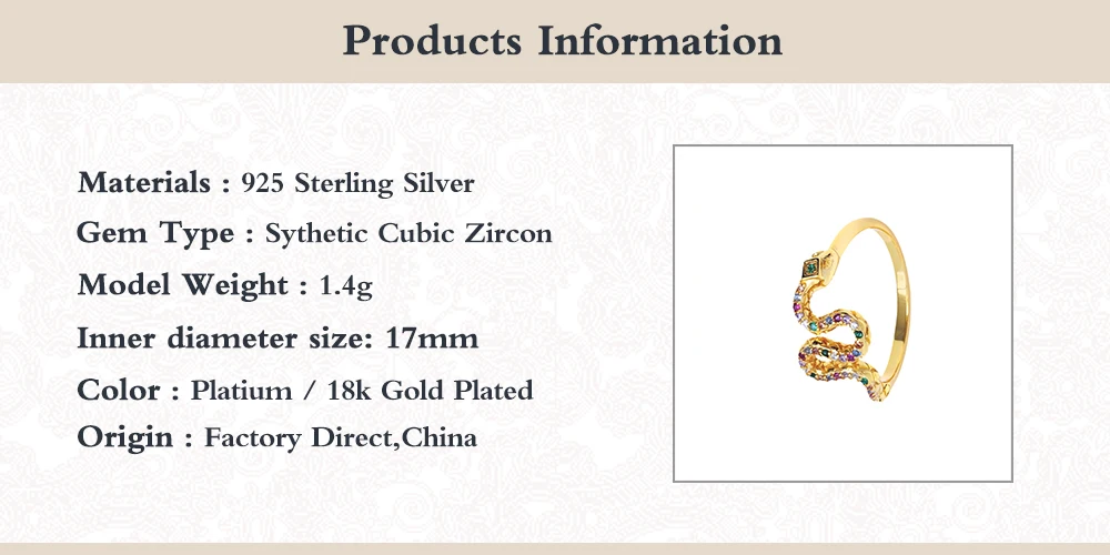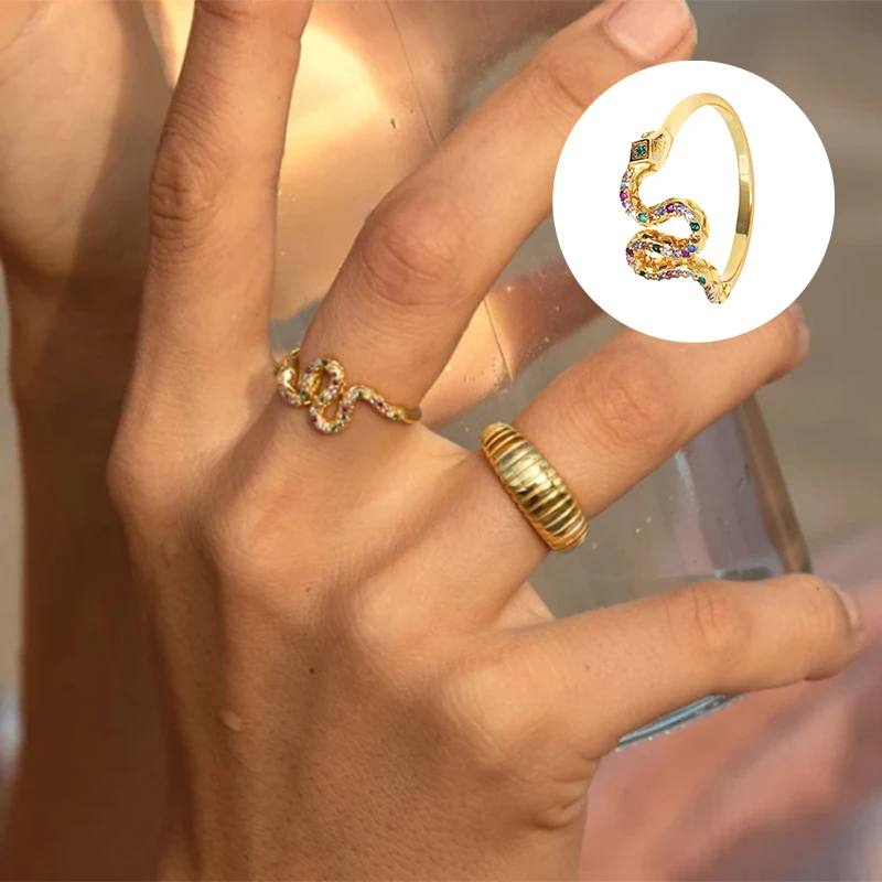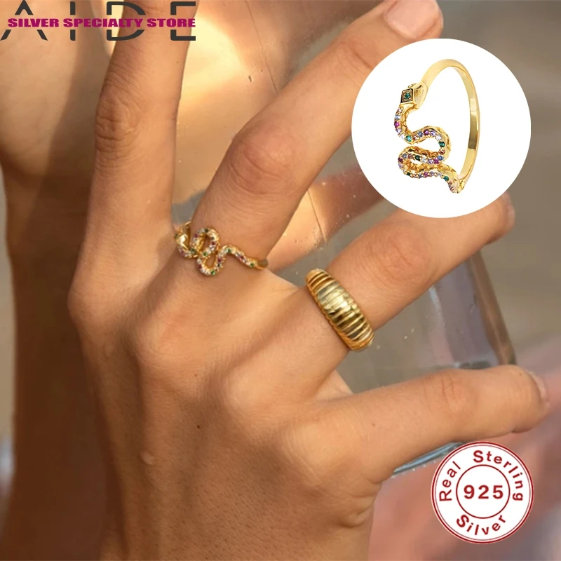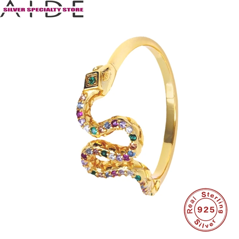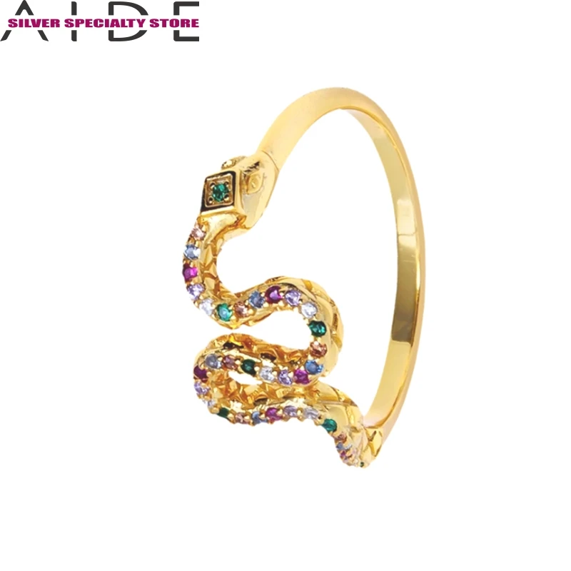 AIDE циркониевое кольцо шик и 925 стерлингового серебра для Для женщин кольца, со змеиным узором, золотистого цвета, Anillos ювелирные украшения Обручальное кольцо Bague Bijoux (украшения своими руками) для подарков