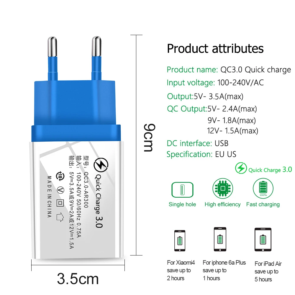 Быстрая зарядка 3,0 2,0 EUUS вилка USB зарядное устройство для путе...