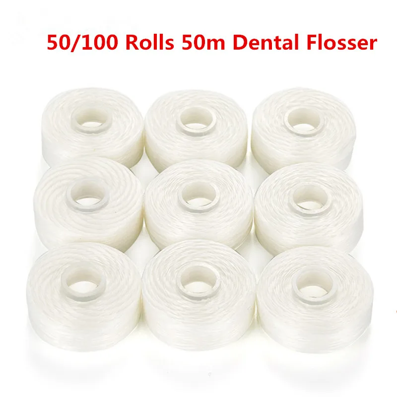 50/100 рулонов 50 м зубная нить гигиена полости рта чистка зубов воск мятный ароматизированный зубная нить катушка зубочистка зубов