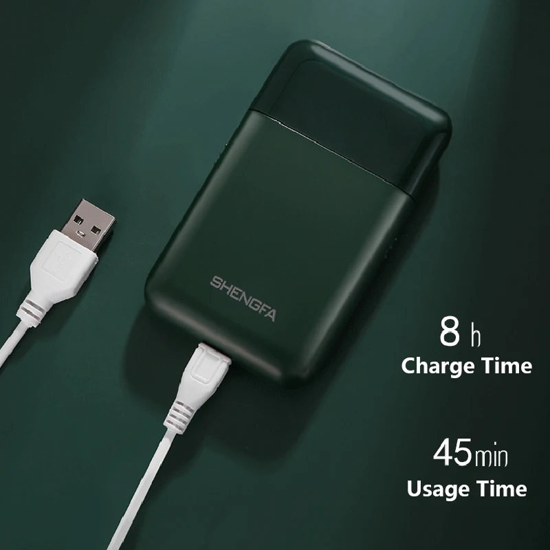 Название продукта: поршневой электробритва Цвет: зеленый, черный Размер корпуса: 9,4*5,7*1,7 см Время зарядки: 8 часов Время использования: 45 минут Напряжение: 100-240 В Мощность: 5 Вт Режим питания: USB Метод очистки: промойте лезвие водой
