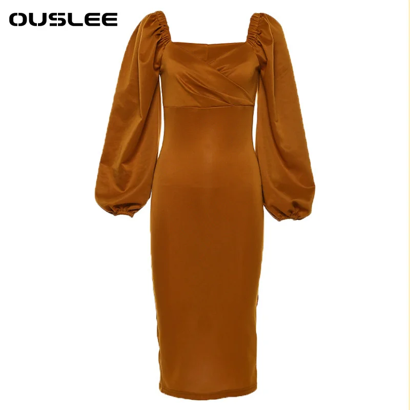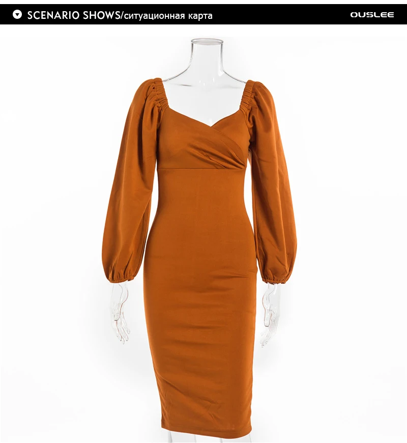 Платье-миди женское с длинным рукавом и V-образным вырезом, с высокой талией