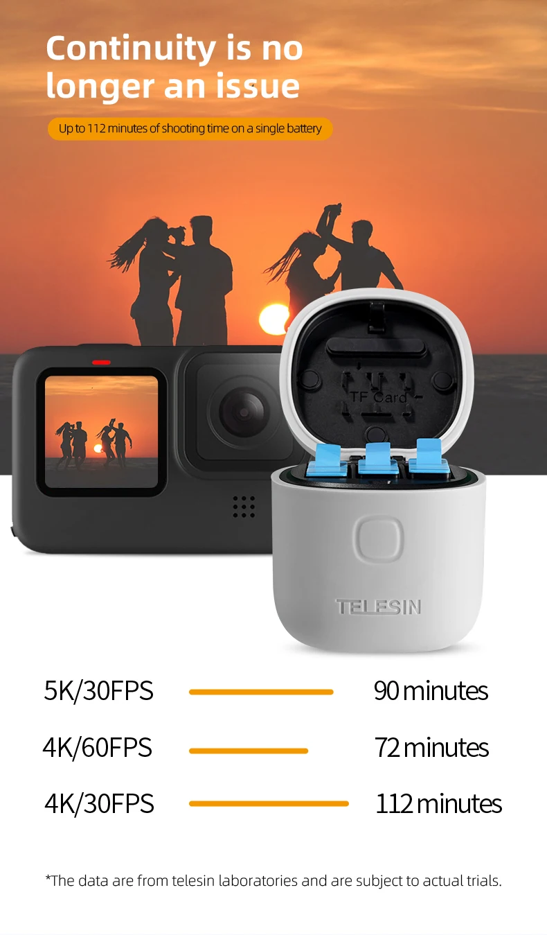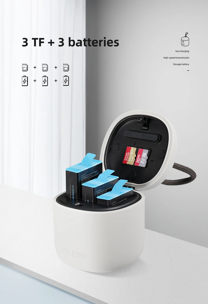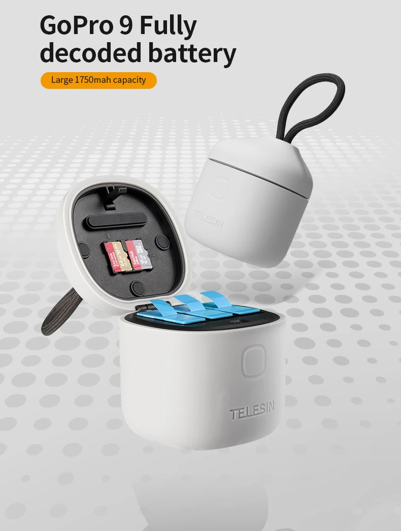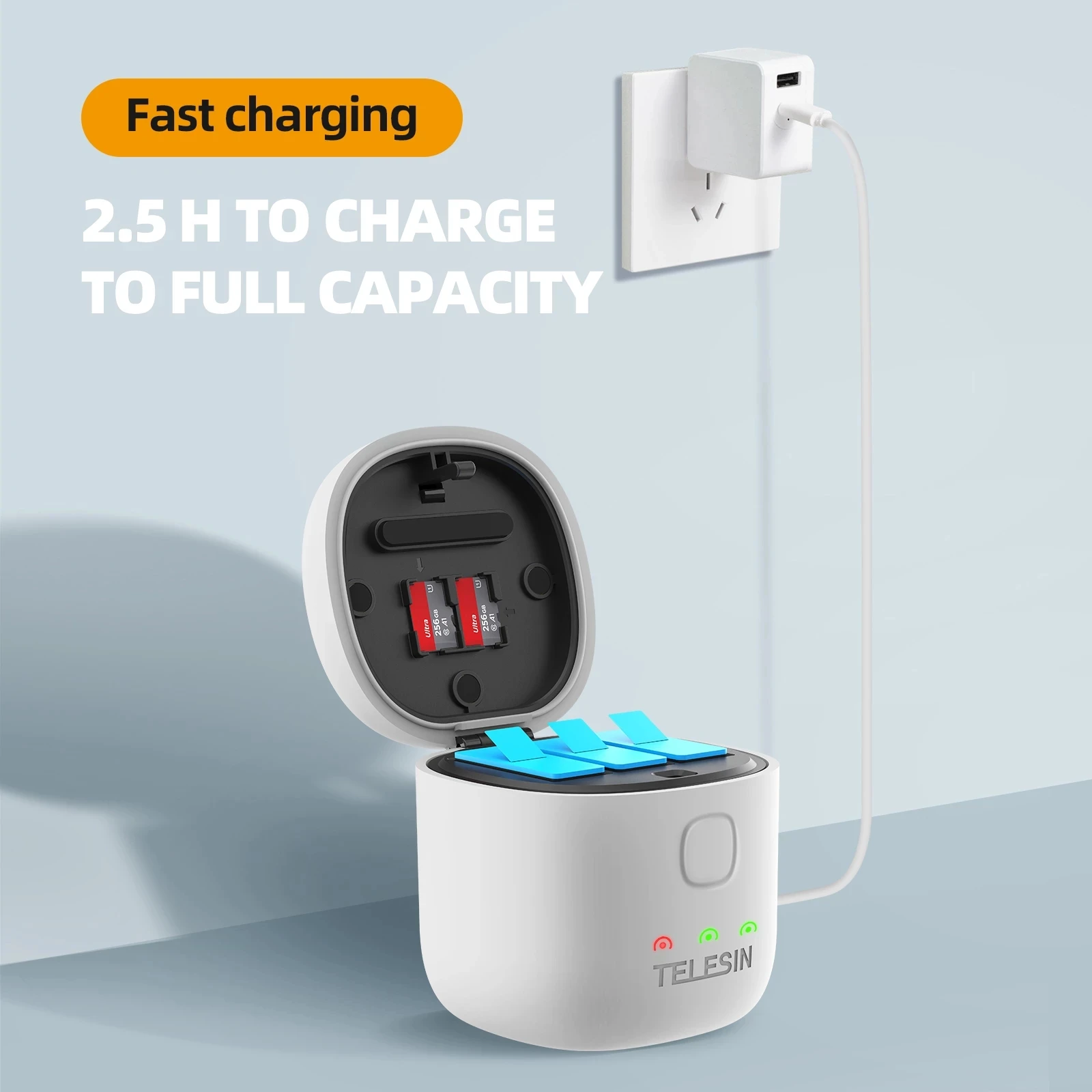 Зарядное устройство TELESIN для GoPro, 1750 мАч, 3 слота
